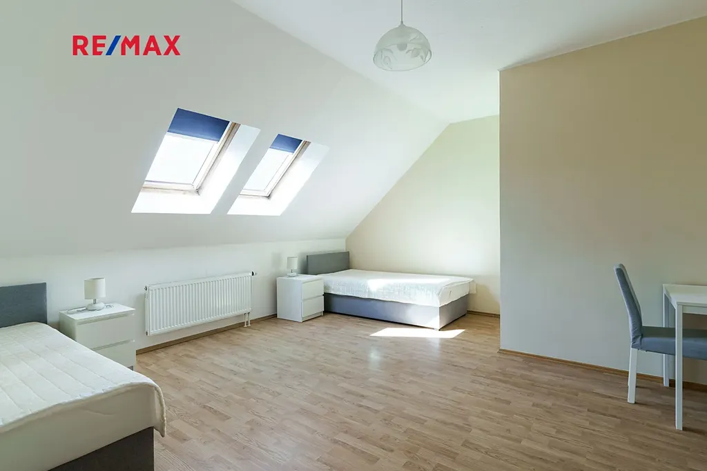 SOUČÁSTÍ DOMU JE TAKÉ PENZION, ideální pro ubytování hostů nebo dlouhodobé pronájmy – každý pokoj má vlastní koupelnu. K dispozici je také místnost na přípravu jídla s myčkou a ledničkou.