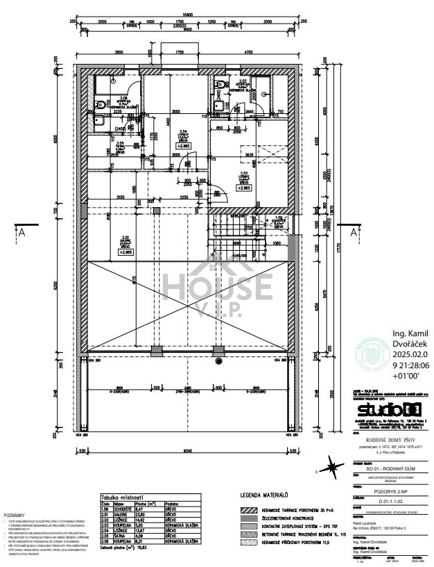 Konstrukce: dutinové keramické tvárnice, železobetonový monolitický strop (250 mm).