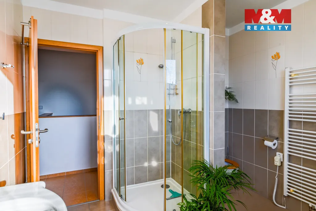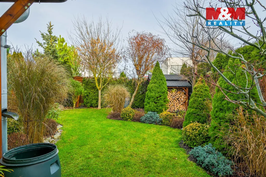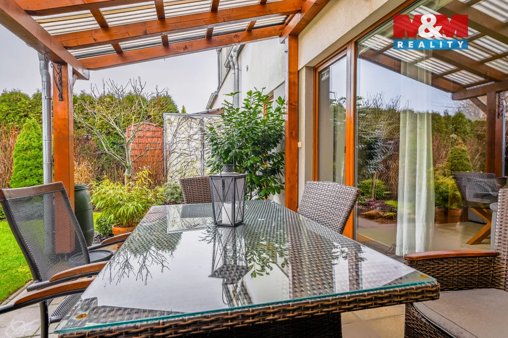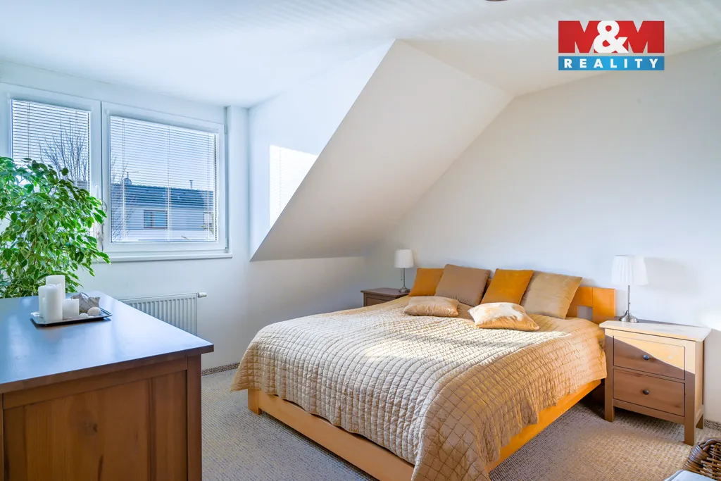 Nabízíme k prodeji řadový rodinný dům, nacházející se v klidné okrajové části města Plzně – Radobyčice. Dům je ideální volbou pro rodinné bydlení s výbornou dostupností do města, je dispozičně řešen jako 5+kk s garáží a má dvě NP. V 1.NP se nachází vstupní chodba, WC, tech. místnost, pracovna (ideální i jako pokoj pro hosty) a hlavní obytný prostor – otevřený obývací pokoj s kuchyní. Z obývací části je přímý vstup na terasu a do zahrady (okrasná zahrada se zahradním domkem na nářadí/palivo do krb. kamen), která krásně navazuje na obytný prostor a vytváří příjemné místo pro relax i posezení. 2. NP nabízí dvě ložnice, další pokoj (dětský pokoj/pracovna), tech. místnost a prostornou koupelnu s vanou, sprchovým koutem a WC. Dům je vytápěn plynovým kotlem nebo je možné topit krbovými kamny v obývacím pokoji, napojen na obecní vodovod i kanalizaci. Ohřev teplé vody je částečně řešen pomocí solárních panelů na střeše, což výrazně snižuje provozní náklady a dělá dům energeticky úspornějším.