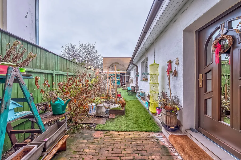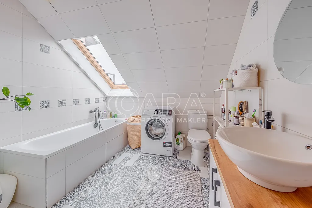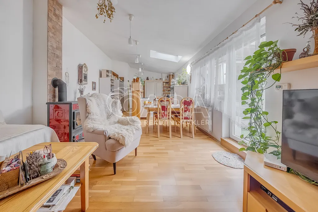 Ve výhradním zastoupení majitelů Vám nabízíme prodej řadového rodinného domu v širším centru Dobříše, v ul. Pionýrů. Dům v původní zástavbě prošel v r. 2012 kompletní rekonstrukcí, přízemí bylo rozšířeno o další obytné místnosti a byla provedena půdní vestavba, kde vzniklo obytné podkroví. To je možné užívat jako samostatný byt v rámci vícegeneračního, popř. nájemního bydlení. Podkrovní byt je přístupný krytým externím schodištěm a pro maximální využití podkrovní plochy byl instalován elektricky ovládaný vstupní poklop. Celková užitná plocha bytu v přízemí je 80,6 m2, podkrovní vestavba má užitnou plochu 58,4 m2.
