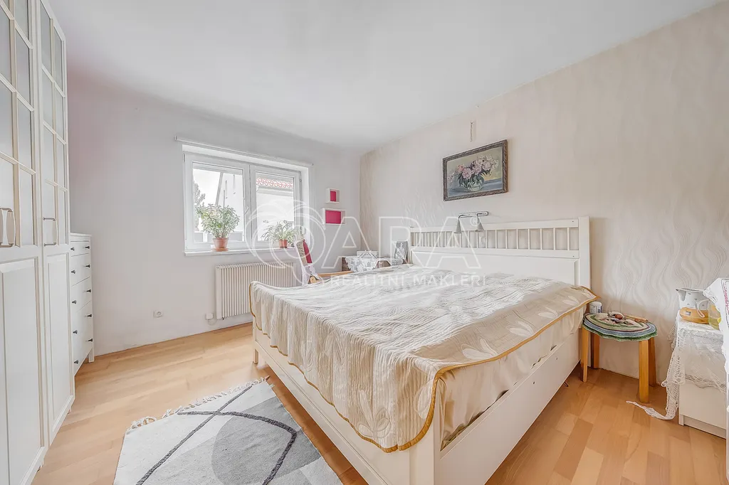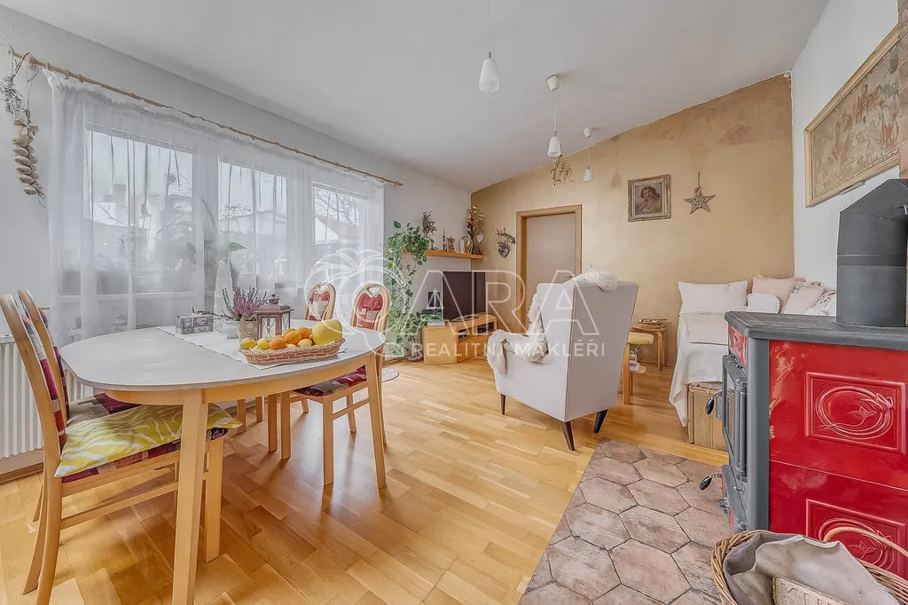 Dispozice: 1. NP - zádveří, prostorný obývací pokoj s kuchyňským koutem (33,2 m2), dvě ložnice (15,5 m2, 12,3 m2), chodba, koupelna a samostatné WC.