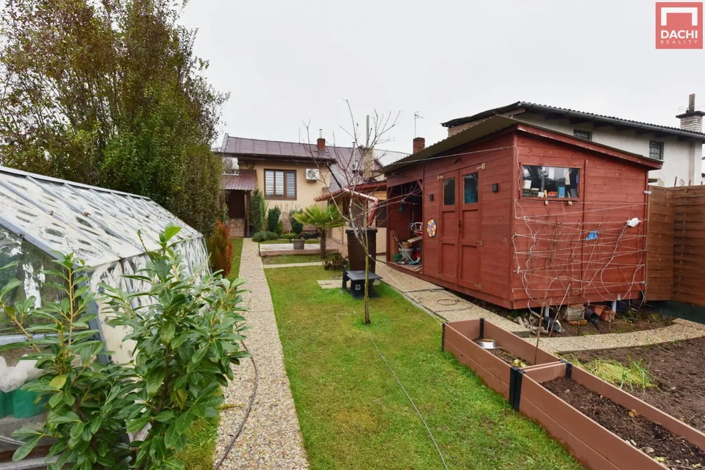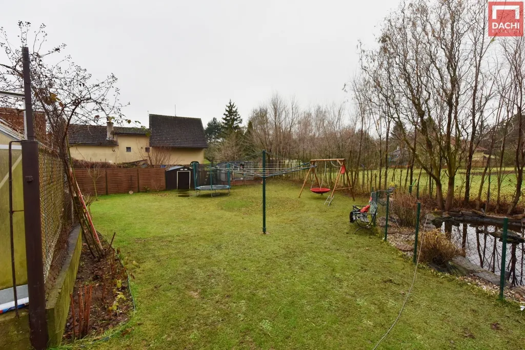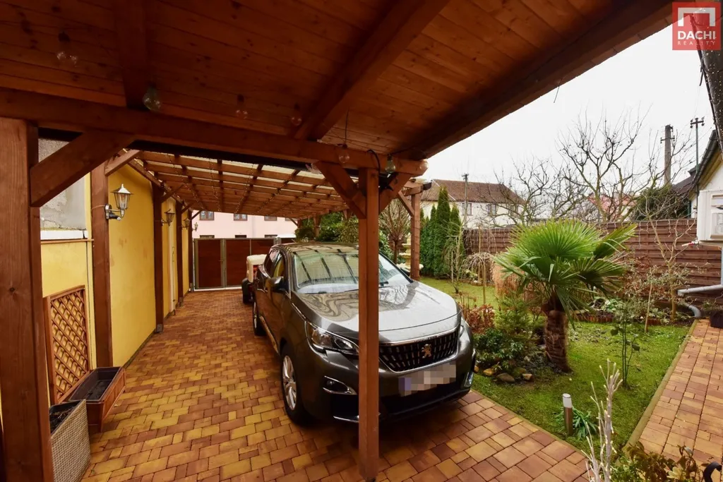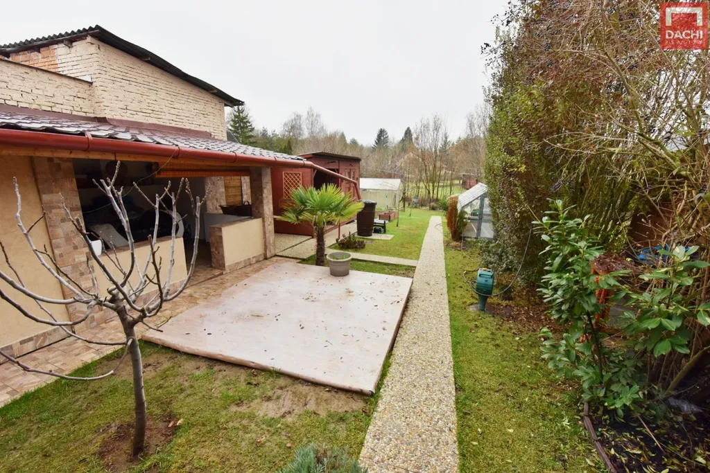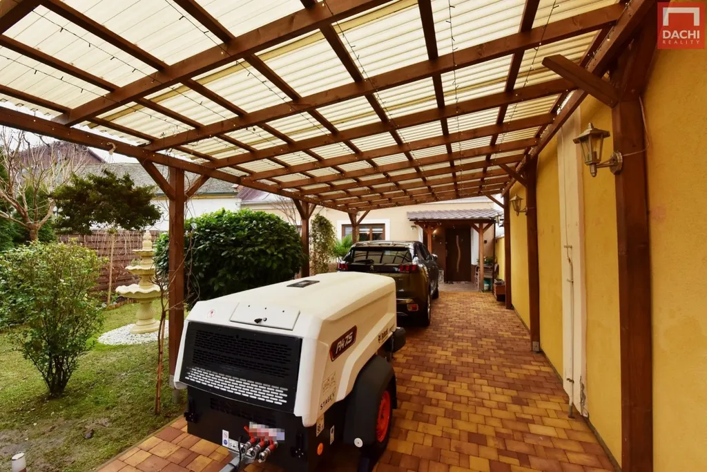 Součástí nemovitosti je prostorný přístřešek na auto o rozloze 32 m, který umožňuje suchý přechod přímo do domu. Na zahradě najdete zděnou zahradní stavbu (10 m) ideální pro odpočinek, dřevěný zahradní domek (8 m) pro uskladnění nářadí, jezírko i kotec pro psa. Dvůr je přirozeně oddělen od okolí a poskytuje klidné a bezpečné zázemí pro rodinu i domácí mazlíčky.