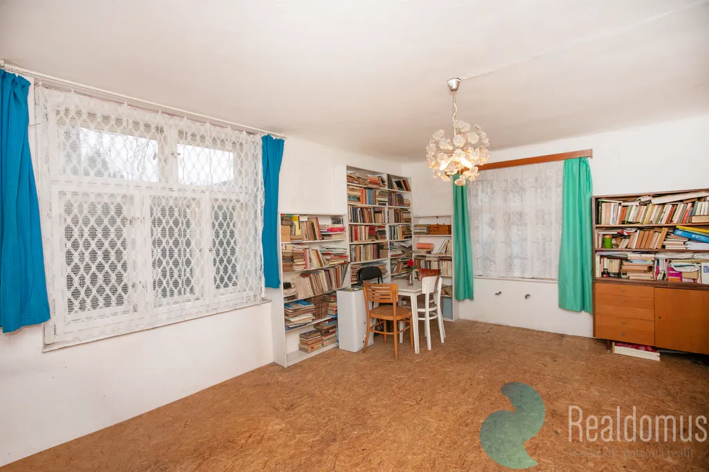 Dále je zde koupelna se sprchovým koutem a WC, dvě prostorné místnosti po 19 m² s okny do ulice a praktická kuchyň (9 m²) s přístupem jak do sklepa, tak do půdního prostoru.