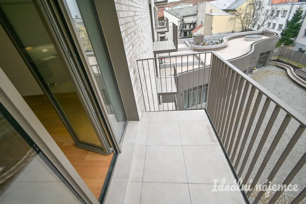 K dlouhodobému podnájmu nabízíme nový byt o dispozici 1+kk v prémiové rezidenci Pekárenský dvůr na ulici Bratislavská, Brno. Byt o výměře 35 m² + balkon se nachází v 4. podlaží domu a nabízí nadstandardní dřevěné podlahy a hliníková okna.