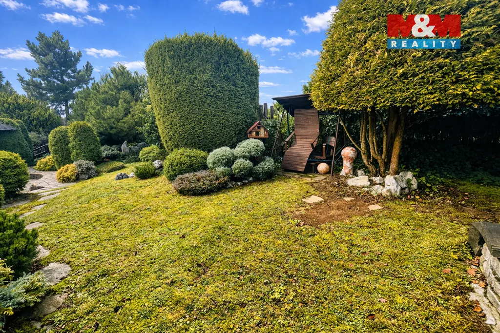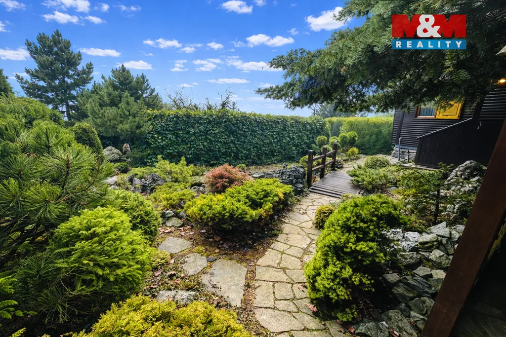 Velkým benefitem je pečlivě upravená, bezúdržbová zahrada, která zajišťuje soukromí a jedinečnou atmosféru. Lokalita nabízí klidné prostředí v těsné blízkosti přírody a zároveň velmi dobrou dostupnost do Brna.