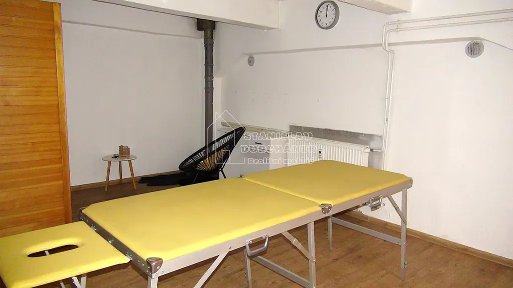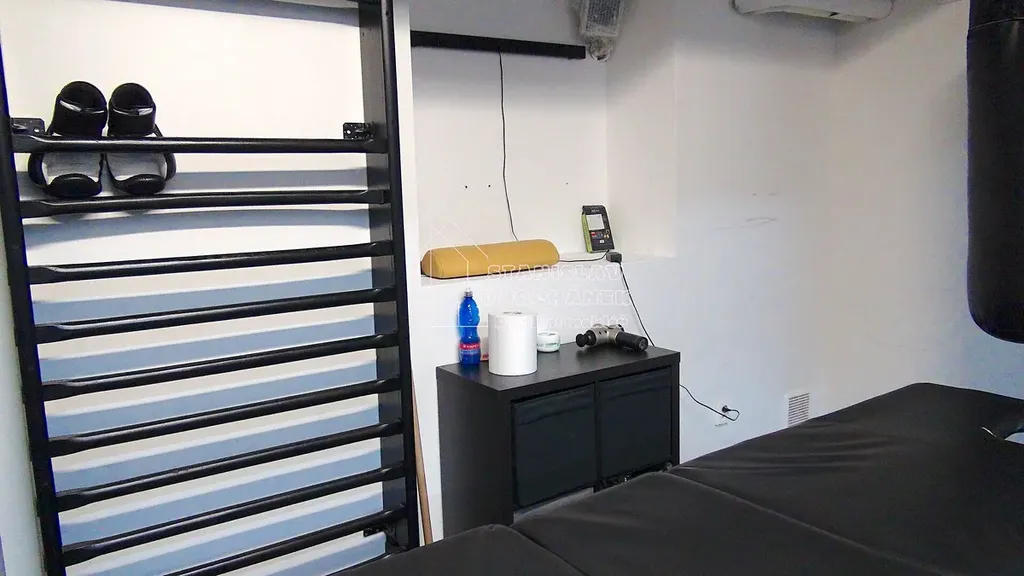 Prostory jsou členěny takto: vstupní chodba s přístupem na WC a dvojsprchu (19 m2) + sál (5,8m krát 15,6 m = 90,5 m2) + masérna = průchozí místnost 29,2 m2) , + zadní místnost-posilovna 12,5 m krát 13,3 m = 166,3m2) + šatny muži + WC + sprcha + šatna ženy + WC + sprcha (52,8 m2). Celkem jde o 357,8 m2.