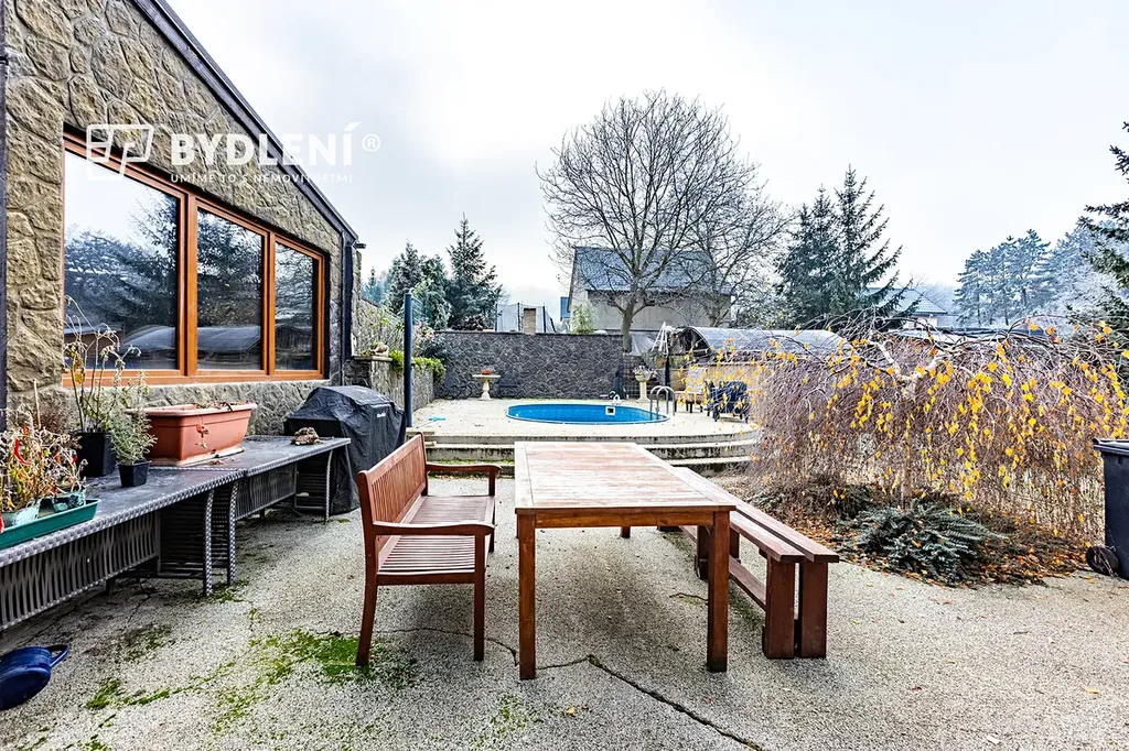 Součástí pozemku u hlavního domu je velká zděná pergola.