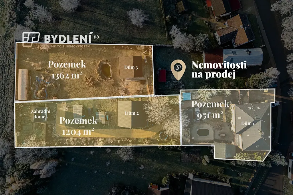 Součástí prodeje jsou tři samostatné stavby, kde každá má svůj rozdělený pozemek!