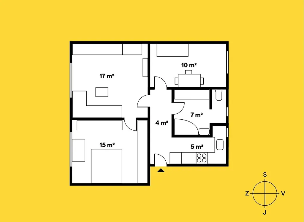 Na podlahové ploše 58 m² naleznete prostorný obývací pokoj, útulnou ložnici, malý pokoj, kuchyň, koupelnu s WC a chodbu. Stylovost bytu podtrhují rekonstruované parketové podlahy v obývacím pokoji a ložnici, knihovna vytvořena z průchodu mezi obývákem a malým pokojem, moderní dřevěné dveře a praktická kuchyň s novým plynovým sporákem a novou lednicí. V ložnici je prostorná vestavěná skříň a plastová okna orientovaná na západ mají elektrické venkovní rolety. Součástí vybavení koupelny je vana, pračka a plynový kotel, zajišťující ohřev vody a topení. K bytu náleží velká sklepní kóje a malá komora v suterénu domu. Byt je vhodný pro pár, mladou rodinu s jedním až dvěma dětmi a nebo pro spolubydlení dvou žen.
