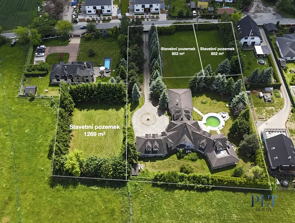 Jižně od hlavního domu se nachází další dvě parcely – č. 314/46 a č. 314/47, každá o velikosti 852 m². Tyto pozemky nabízejí široké možnosti využití: kromě klasické výstavby rodinných domů mohou sloužit také jako prostor pro soukromé sportovní nebo vzdělávací zařízení – např. mateřskou školu, jezdecký areál, tenisový kurt či golfové odpaliště. Vše v souladu s aktuálním územním plánem.