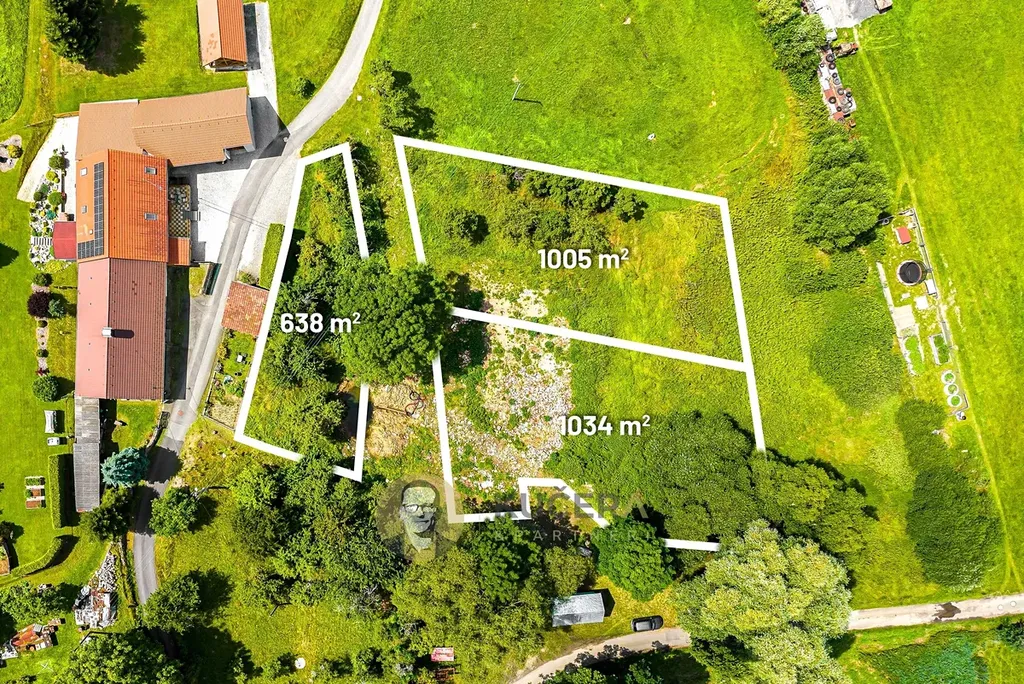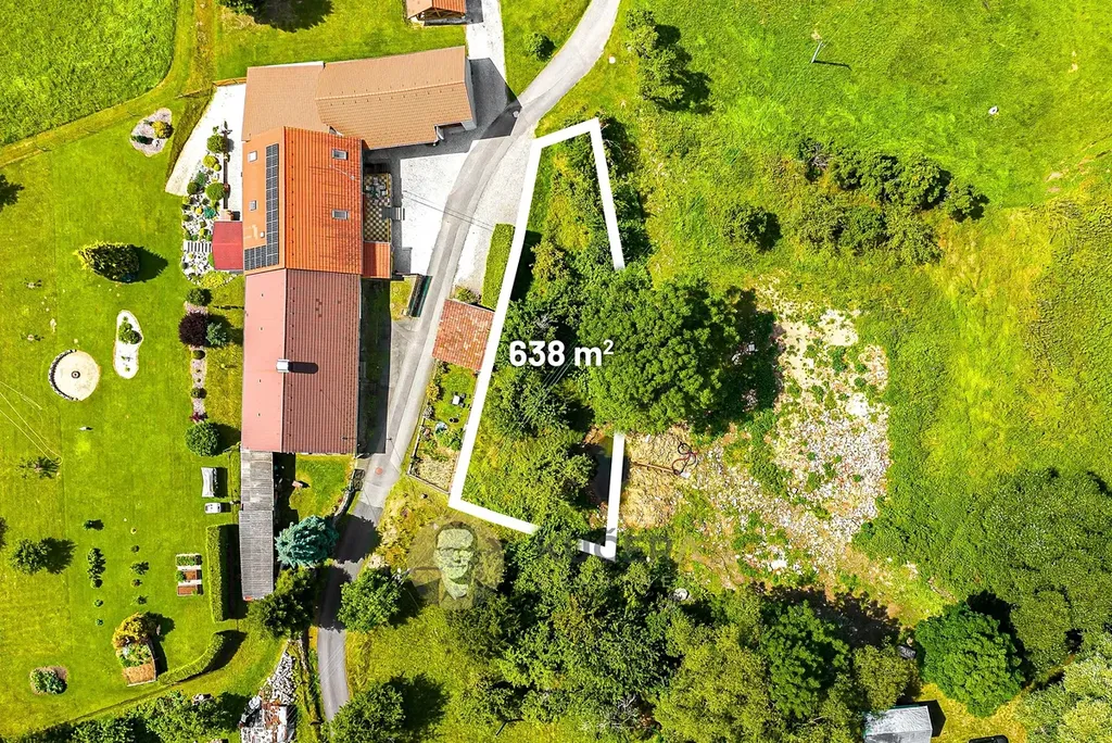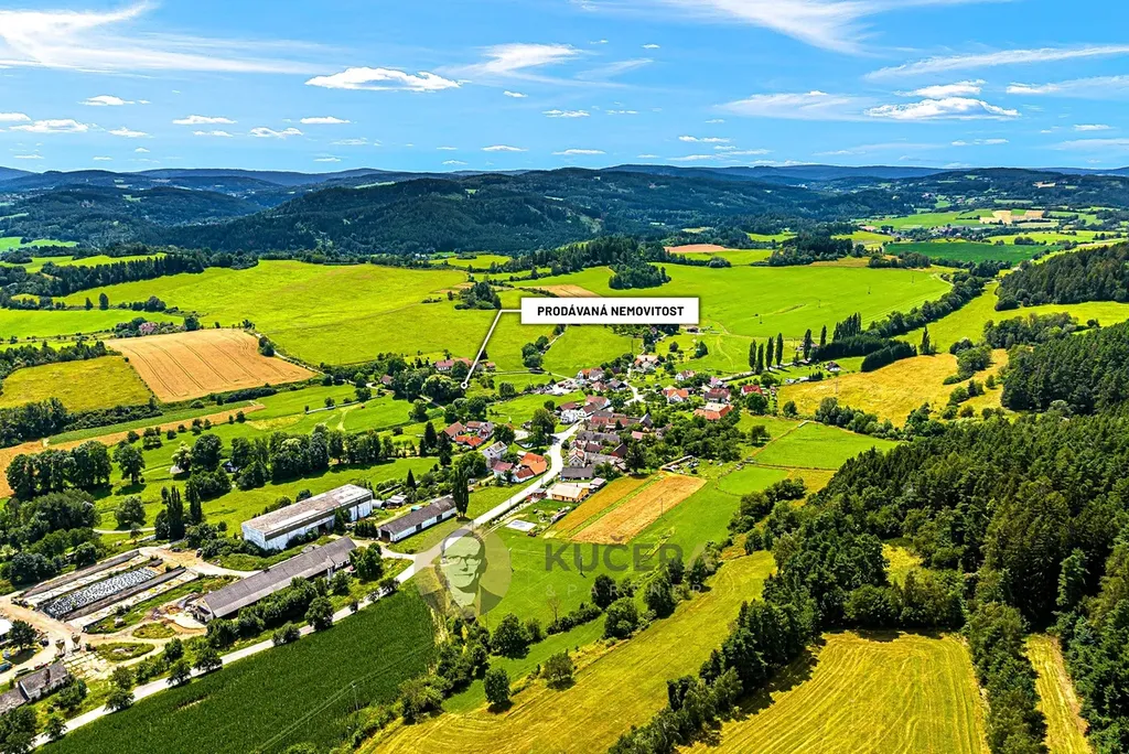 Pozemek leží v klidné části obce, na hezky prosluněném místě. Součástí nabídky je možnost rozšíření o starý ovocný sad s tradičními odrůdami a malé přírodní jezírko se zdrojem vody. Už teď je to místo, které má atmosféru – kus Šumavy.