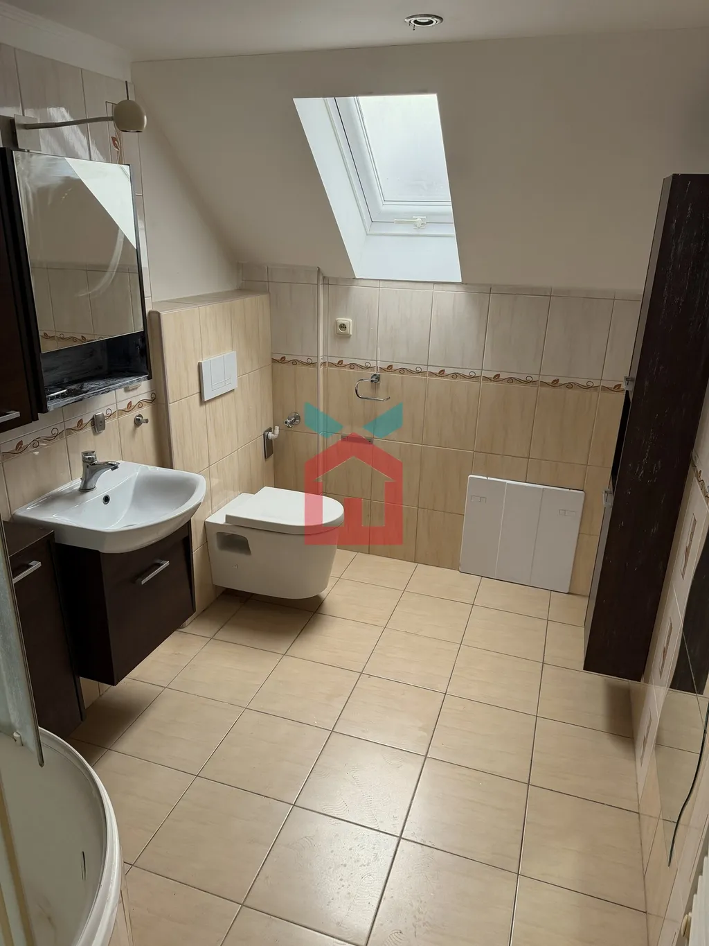 V patře pak dva opravdu velké pokoje, každý s vlastní terasou, a koupelna se sprchovým koutem a WC.