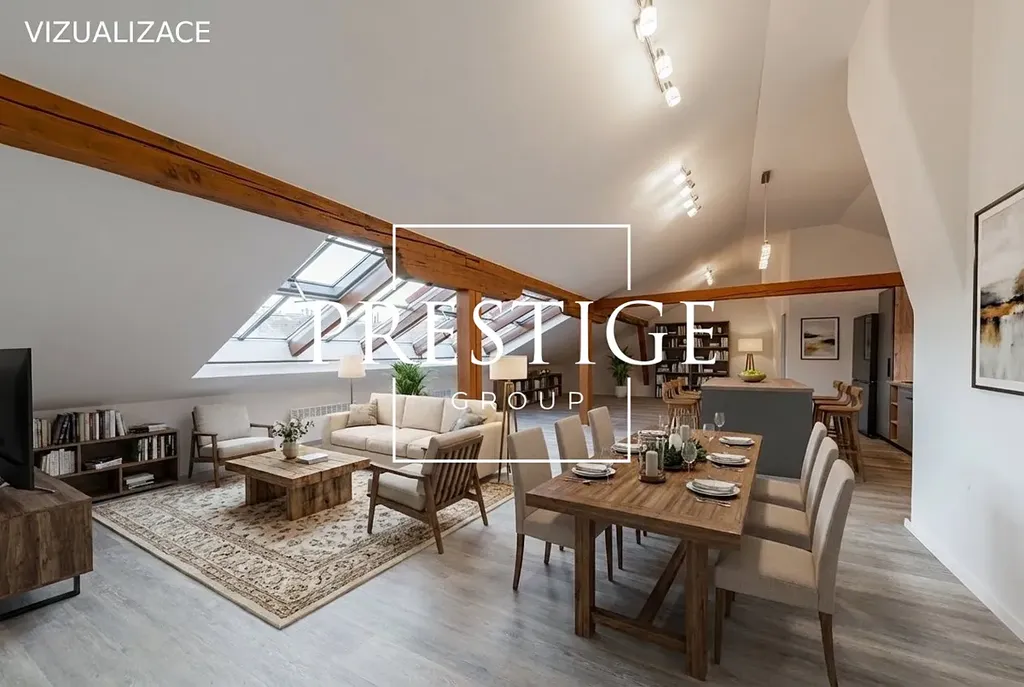 „PRESTIGE GROUP“ nabízí k pronájmu prostorný a světlý podkrovní byt o dispozici 3+kk a užitné ploše 126 m², který se nachází v pátém podlaží cihlového domu na adrese Navrátilova, Praha 1. Byt prošel rekonstrukcí a je připraven k nastěhování.