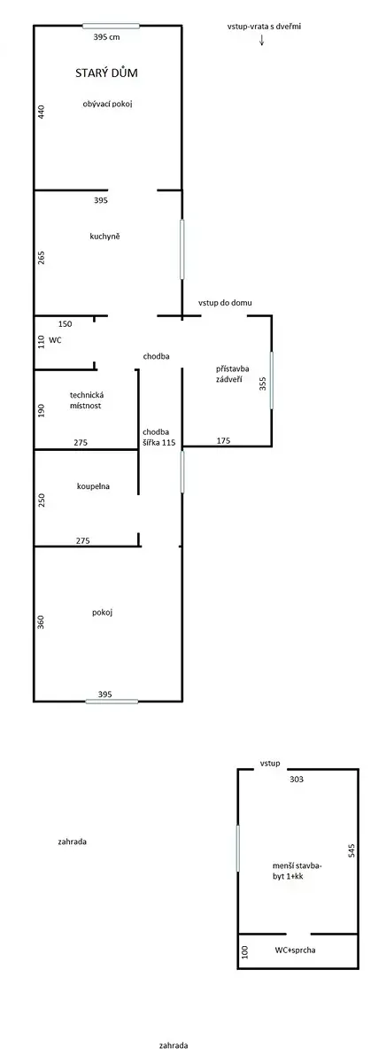 Na pozemku za domem byla v roce 2012 vybudována menší přízemní stavba navrhována jako byt 1+kk. Za zahradou teče řeka Morava. Nejedná se o záplavové území.