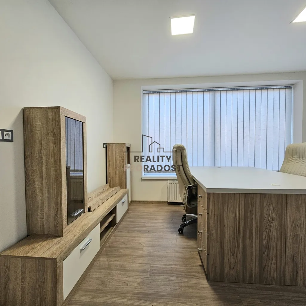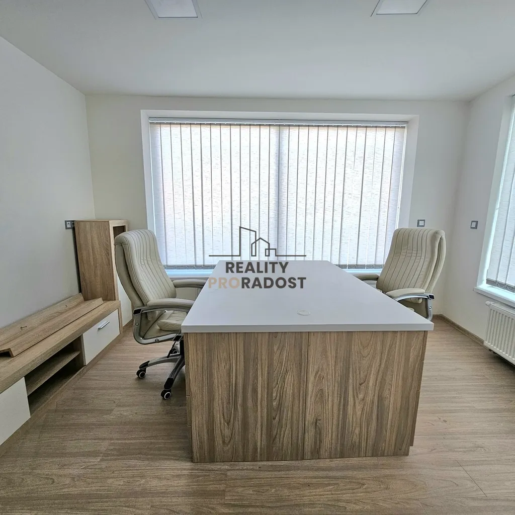 zahrnuje vybavenou kancelář s příjemným a funkčním uspořádáním. Dále se můžete těšit na zasedačku, která je ideální pro obchodní schůzky a prezentace, vše vybaveno klimatizací a pohodlným nábytkem.