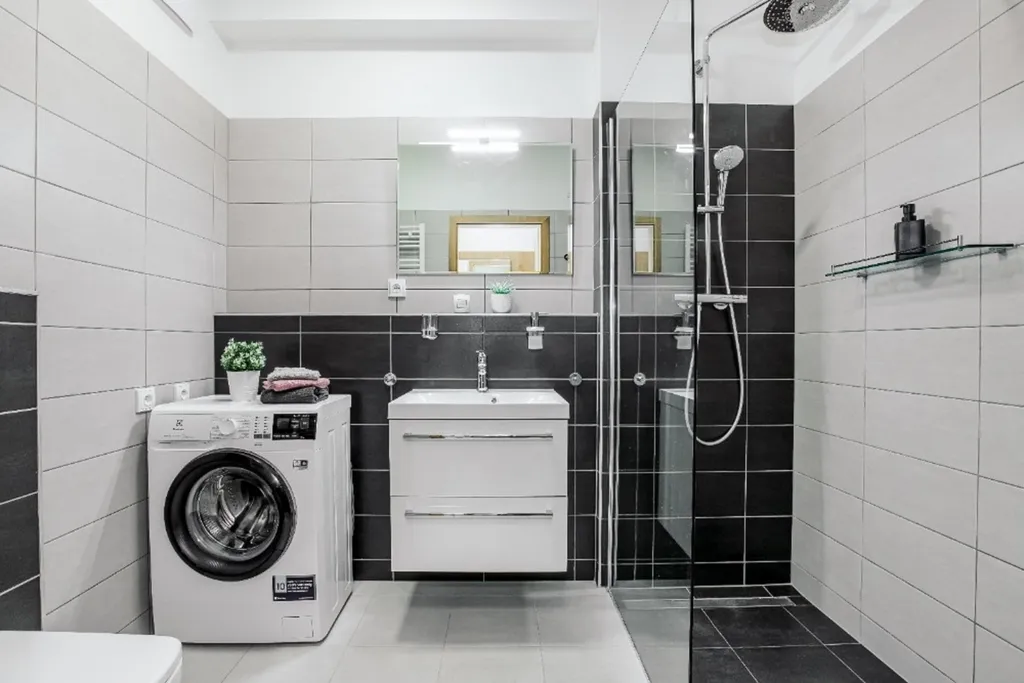 K apartmánu náleží vlastní parkovací místo v suterénu domu a také velká sklepní kóje, kde je dostatek prostoru pro umístění kol, lyží, kočárku apod. Tyto věci pak nemusí být umístěny ve společných prostorách, což je také výhodou.