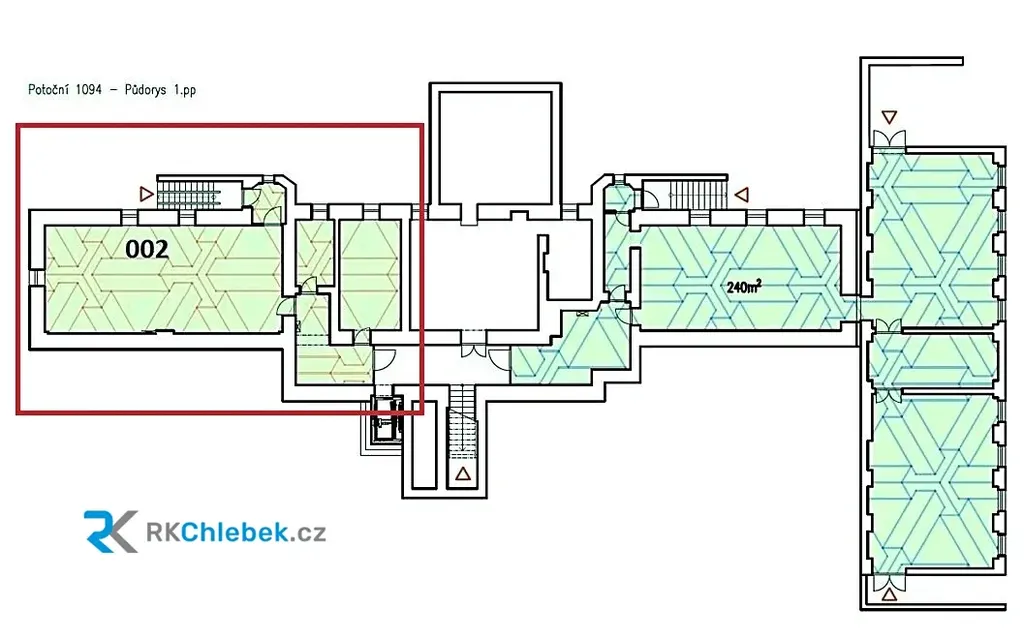 Prostory se nachází v 1. podzemním podlaží a disponují samostatným vstupem z nádvoří (vchod E) i možností přístupu výtahem z hlavního vstupu A. Díky této kombinaci jsou perfektně dostupné pro klienty i zaměstnance.