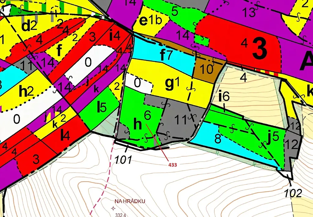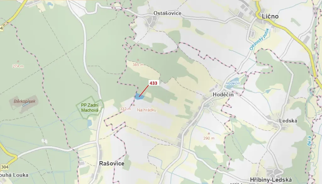 Lesní pozemek o výměře 15 106 m2, parcelní číslo 433, podíl 1/1, katastrální území Olešnice u Rychnova nad Kněžnou, obec Olešnice, obec s rozšířenou působností Kostelec nad Orlicí, okres Rychnov nad Kněžnou, Královéhradecký kraj. Částečně po těžbě.