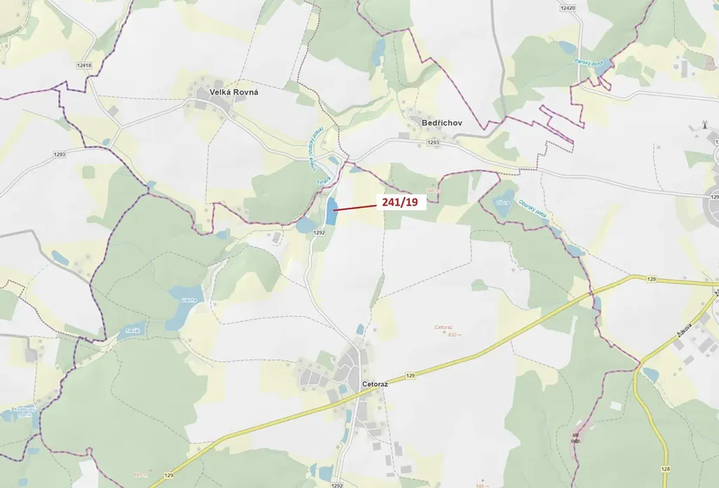 Lesní pozemek o výměře 17 171 m2, parcelní číslo 241/19, podíl 1/1, katastrální území Cetoraz, obec Cetoraz, obec s rozšířenou působností Pacov, okres Pelhřimov, Kraj Vysočina. Po těžbě.