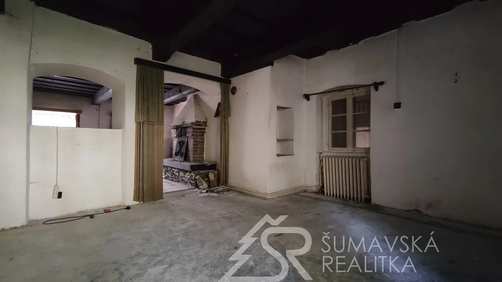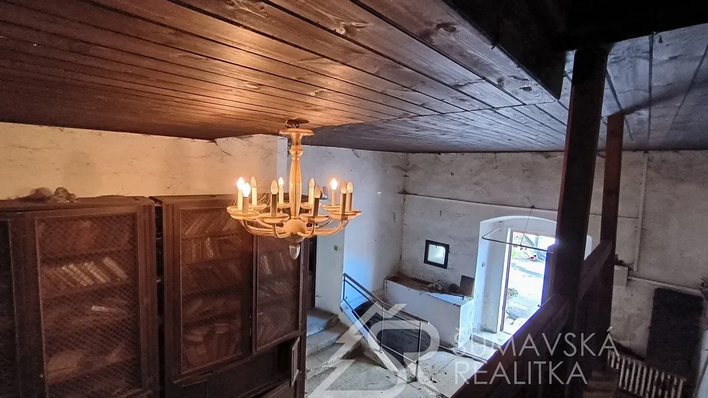 Popis: původní měšťanský dům s historií, o níž svědčí řada prvků jako zázrakem zachovaných v interiérech. Dům nevykazuje statické poruchy, ani nepřiměřenou vlhkost–i když nebyl v posledních letech obýván. Pod střechou z plechových pásů je krov v dobrém stavu. Dřevěná okna i podlahy původní. Mohutné obvodové a nosné zdivo, zaklenutí a niky, černá kuchyně, trámové stropy – to vše vytváří autentické prostředí – jako by dům chtěl vyprávět svůj příběh…