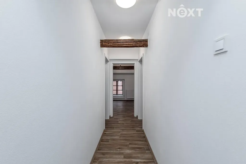 Nabízíme k pronájmu krásný byt o dispozici 4+kk (o výměře 107,2 m2) po kompletní rekonstrukci, který je situovaný ve zrekonstruovaném domě v blízkosti centrální části Nepomuku. Zděný dům (sestávající z přízemí a podkroví) se nachází v klidné části ulice Plzeňská, v docházkové vzdálenosti od Přesanického náměstí cca 140 m (2 min chůze) a od náměstí Augustina Němejce cca 210 m (3 min chůze). V domě jsou 2 bytové jednotky (1. je v přízemí, 2. v podkroví), díky tomu nabízí bydlení zde soukromí a klid. Předmětný byt se nachází v podkroví. Dům je po kompletní rekonstrukci, mimo jiné má vyměněná okna za nová plastová a novou střešní krytinu. Stejně tak i samotný byt prošel kompletní rekonstrukcí včetně nových rozvodů, nových podlah, nových dveří, nové kuchyňské linky včetně spotřebičů, a nové koupelny a toalety. Byt sestává z chodby, koupelny s vanou, samostatnou toaletou, kuchyně společnou s obývacím pokojem, 3 samostatnými pokoji a ze spíže. Velkým benefitem je možnost využití vyčleněného venkovního posezení plochy o velikosti 15 m2, které se nachází na zahradě. Dalším velkým benefitem je možnost soukromého parkování přímo ve dvoře a možnost využívání zahrady o velikosti cca 190 m2, kde si lze vybudovat i vlastní zahrádku. Zahradu a posezení Vám ráda představím přímo na živo na místě. Okna bytu jsou orientována jak směrem do ulice, tak i do dvora. Byt je velmi hezky řešený a je vybavený kuchyňskou linkou s elektrickou troubou a indukční deskou. Podlahová krytina v celém bytě je tvořena vinylem a dlažbou. Vytápění je zajištěno plynovým kotlem a krbovými kamny situovanými v obývacím pokoji. Ohřev vody je zajištěn přes plynový kotel. Byt je v současné době ještě obsazený nájemníky a bude volný od 1.2.2026. Měsíční nájemné činí 17.950 Kč. Zálohy na vodné/stočné činí 220 Kč/os/měsíc. Náklady na energie zůstávají napsány na majitele bytu a nájemník tak bude platit nastavené zálohy a vždy jednou za rok proběhne vyúčtování, ze které bude zřejmá skutečná spotřeba. V tomto případě jsou nastaveny zálohy na elektřinu na 2.500 Kč/měsíc a zálohy na plyn na 3.500 Kč/měsíc. K poplatku za svoz komunálního odpadu se přihlásí nájemník sám a stejně tak je i sám platí přímo městu. V domě je nově nainstalována i TV anténa a kompletní příprava na připojení od Skylink. V Nepomuku je veškerá občanská vybavenost - obchody, pošta, restaurace, Mateřská škola a Základní škola, sportoviště, bohatá nabídka kroužků pro děti i dospělé. V Nepomuku funguje jak autobusová doprava, tak i vlaková. Vratná kauce ve výši 39.000 Kč. Provize za zprostředkování pronájmu je 15.000 Kč vč. DPH. Pro komunikaci uvádějte evidenční číslo zakázky N115421.