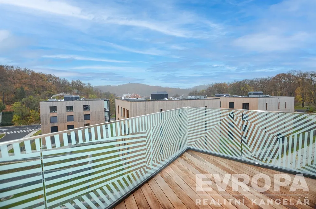 Byt se nachází ve 4.NP šestipatrového domu s výtahem. Provedení bytu je ve vysokém standardu, podlahy z pravého dřeva v obytných místnostech, koupelna s velkoformátovými keramickými obklady. Součástí vybavení koupelny je také žebříkový radiátor a zařizovací předměty značky Hansgrohe a Villeroy & Boch. Byt je dále vybaven rekuperací a předokenními žaluziemi. Vestavená skříň v celé vstupní chodbě a skříň přes celou délku stěny v ložnici nabízí ohromné množství úložného prostoru.