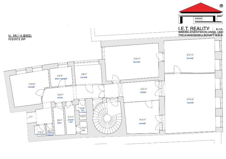Nabízíme k pronájmu samostatnou kancelářskou jednotku, celkem 171,4 m², která zaujímá celé 2.NP historického paláce v centru města. Jedná se o 6 kanceláří s výměrami 14,53 m², 39,96 m², 22,67 m², 24,56 m², 14,92 m² a 6,86 m², ke kterým náleží další společné prostory včetně kuchyňky, archivu a sociálního zázemí. Přístup do objektu je možný ze dvou stran, jednak z ulice Orlí ale také z Římského náměstí, kde se nachází garáž a parkování. Do příslušného patra je vstup zajištěn jak schodištěm, tak i výtahem. Prostory jsou k pronájmu volné od 1.4.2026, po dohodě i dříve. Upozorňujeme, že majitelem nemovitosti nebyl předložen průkaz energetické náročnosti, proto uvádíme třídu G.