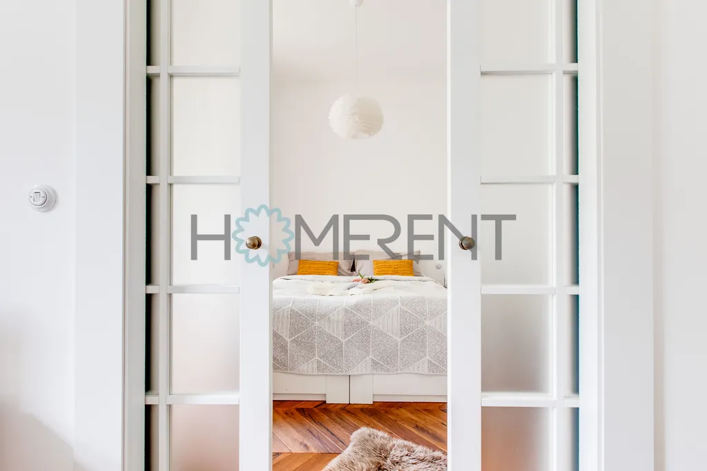 Součástí bytu je také ložnice s manželskou postelí, odkud můžete vyjít na malý, ale útulný balkon o rozloze 2 m², obrácený do klidného vnitrobloku. Perfektní prostor pro ranní kávu či večerní sklenku vína. Nechybí ani moderní koupelna se sprchovým koutem a pračkou. Celý byt pak dotváří krásné dřevěné parkety, které dodávají prostoru eleganci i teplo domova.