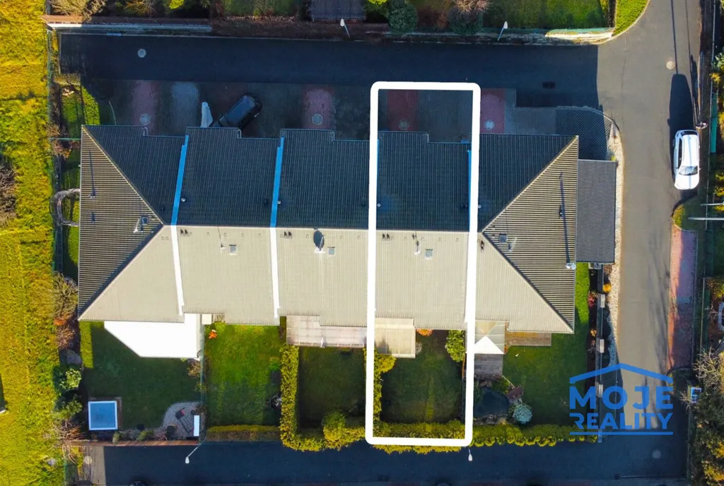 Dům je vytápěn vlastním plynovým kondenzačním kotlem, který zároveň slouží k ohřevu vody. Pro zvýšení bezpečnosti je instalován elektronický zabezpečovací systém. Parkovací kapacitu doplňují dvě venkovní stání přímo před domem. Udržovaná zahrada s terasou a pergolou nabízí příjemné místo pro odpočinek a relaxaci.