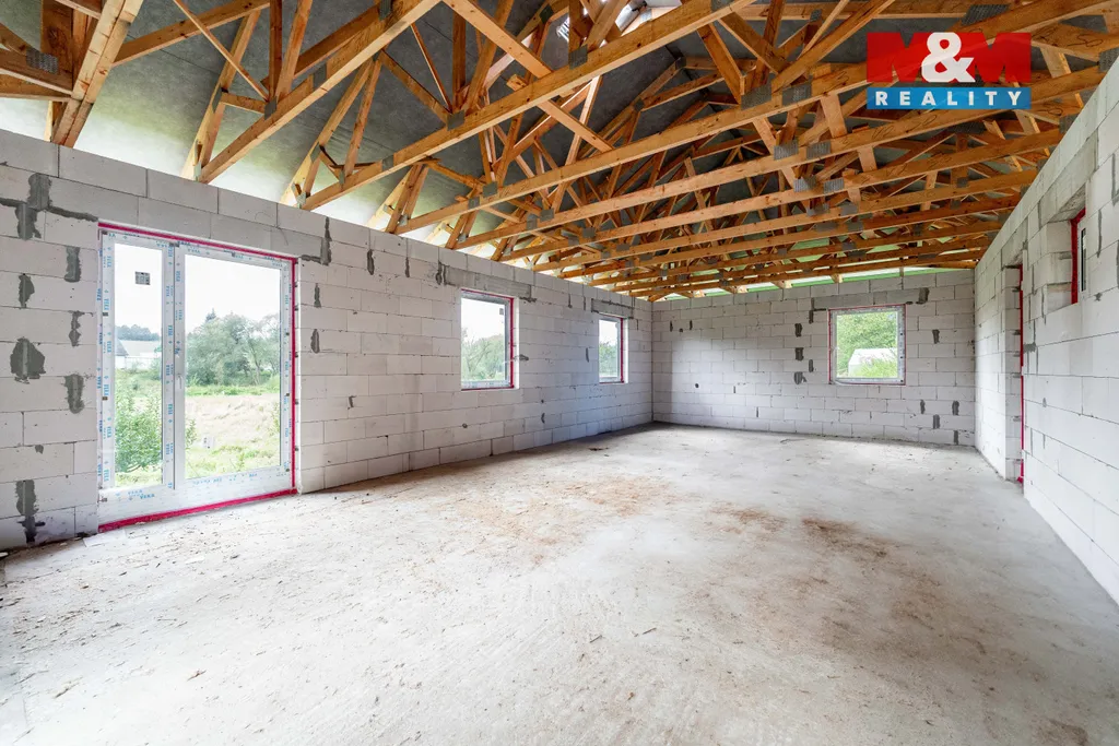 Hrubá stavba, která je připravena k dokončení dle vašich vlastních představ, skýtá neomezené možnosti pro vytvoření vysněného domova. Atypický tvar pozemku a poloha na konci obce zajišťují naprosté soukromí, a přitom snadný přístup do centra města.