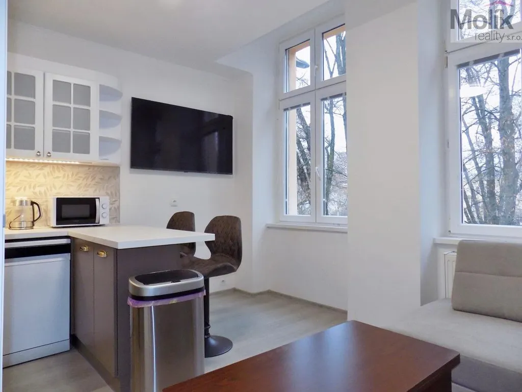 V zastoupení majitele bytu nabízíme k pronájmu luxusní zrekonstruovaný byt 2+1 v osobním vlastnictví se zařízením a balkonem o celkové výměře 53m2 podlahové plochy, nacházející se v 1. patře činžovního domu s výtahem v Teplicích, v ulici U Hadích lázní. Byt se nachází ve vyhledávané lokalitě v samém centru lázeňského města s veškerou občanskou vybaveností v místě. Byt samotný prošel kompletní rekonstrukcí včetně koupelny, toalety, rozvodů vody, odpadů a elektřiny, podlah a dveří. Bytová jednotka sestává z předsíně, předpokoje se šatní stěnou a botníkem, koupelny se sprchovým koutem, pračkou LG, toaletou s bidetem a umyvadlem, druhé toalety s bidetem, ložnice s balkonem, dalšího pokoje, obývací kuchyně s kuchyňskou linkou. V obývací kuchyni se nachází nová kuchyňská linka se zabudovaným sporákem s plynovou deskou, elektrickou troubou, myčkou. Dále je zde nerez digestoř, lednice, barový pult s posezením, televizor LG, sedací souprava a multifunkční stolek. V ložnici je kvalitní nová postel 200x200cm, čtyřdílná šatní skříň a komoda. V dalším pokoji se nachází nová vestavěná skříň přes celou stěnu. Byt je vytápěn novým plynovým kotlem značky Vaillant. V pokojích a kuchyni nová plovoucí podlaha, v předsíni, koupelně a WC dlažba.