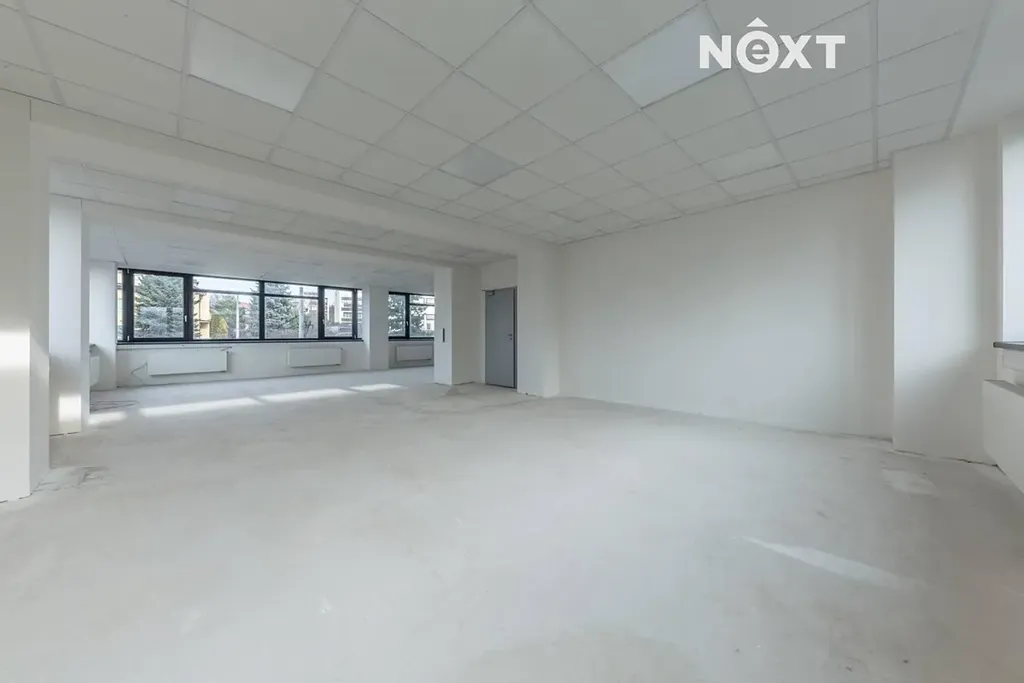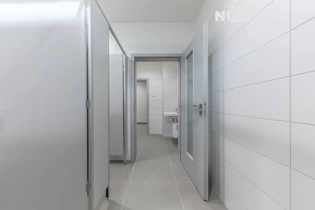 Exkluzivně nabízíme k pronájmu kancelářský prostor o celkové výměře 375 m² ve 4. nadzemním podlaží budovy na adrese Průběžná 76, Praha 10 – Strašnice. Hlavní část patra tvoří otevřený prostor o velikosti 347,35 m², který je možné upravit jako open space nebo rozčlenit na menší kanceláře a zasedací místnosti podle požadavků nájemce. Součástí zázemí jsou předsíň a WC pro ženy (3,48 m² + 6,19 m²), předsíň a WC pro muže (3,45 m² + 9,18 m²), technická místnost (2,44 m²), úklidová místnost (2,85 m²), m²). Patro je připraveno pro vedení datových rozvodů v podhledech, nabízí možnost instalace klimatizace, disponuje rozvody vody a kanalizace, ústředním vytápěním radiátory, silnoproudem i slaboproudem a napojením na vzduchotechnické trasy. Podlahy jsou betonové v hlavním open space a keramické v sociálním zázemí; stěny tvoří sádrové omítky a stropy kazetové SDK podhledy. Standardní výška stropu je přibližně 2,6 m. Prostor je přístupný výtahem i schodištěm a je vhodný pro dlouhodobé administrativní nebo kombinované využití díky dobré dostupnosti MHD, napojení na hlavní pražské tahy a občanské vybavenosti v bezprostředním okolí. Pro komunikaci uvádějte evidenční číslo zakázky N115209.