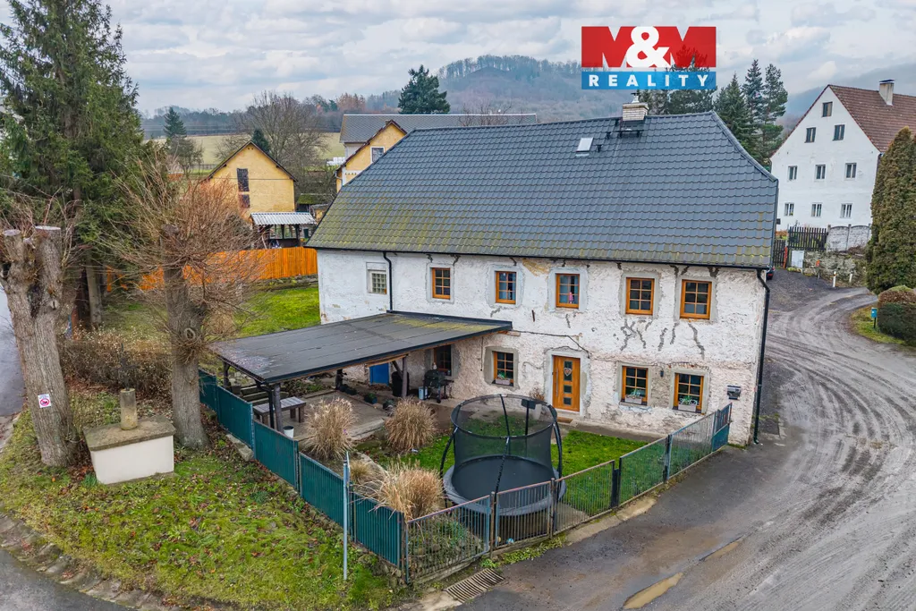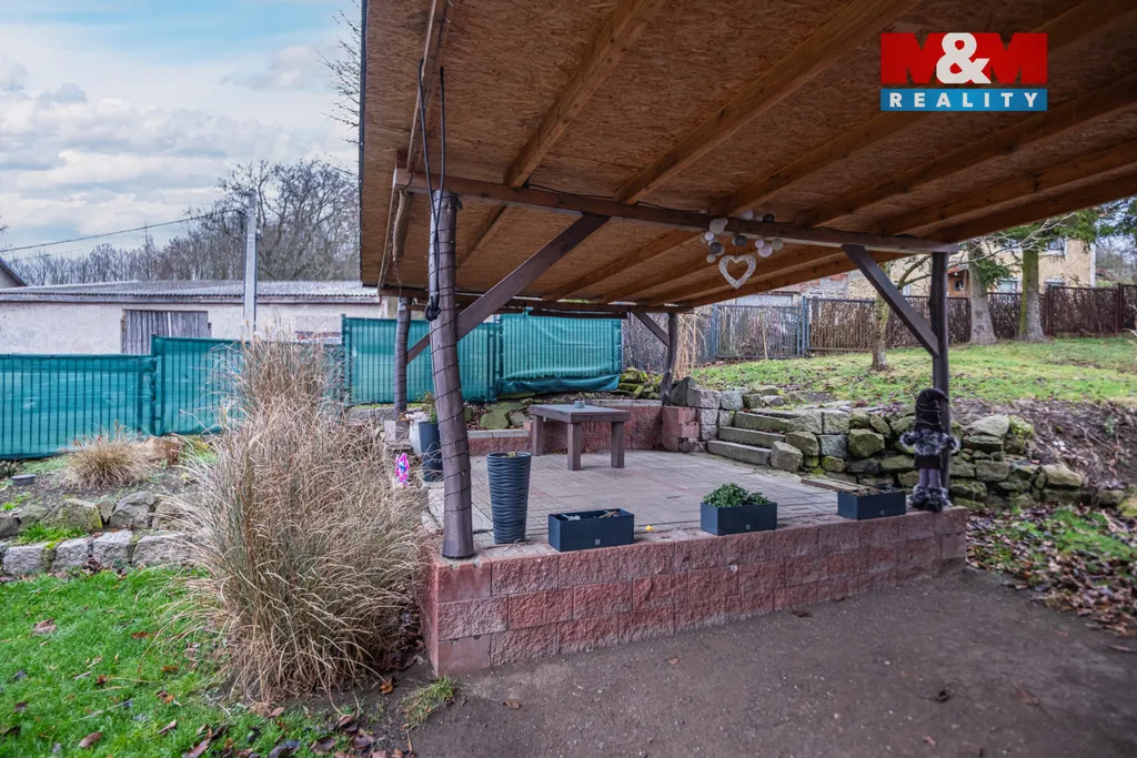 Nabízíme k prodeji prostorný dvoupodlažní rodinný dům o dispozici 5+1 v klidné části obce, po značné rekonstrukci, s oplocenou zahradou a pergolou s posezením. Užitná plocha domu činí 197 m² a je rozložena do dvou pater. V přízemí se nachází předsíň, velká koupelna propojená s WC, obývací pokoj se vstupem do kuchyně a také obrovská technická místnost, členitá a využívaná i místo sklepa. Schodištěm se dostaneme do patra, kde najdeme rozlehlou halu a z ní vstup do šatny, odtud do ložnice, dále prostorný dětský pokoj, pracovnu a vstup do původní garáže, odtud pak vstup na půdu. Tento prostor je přístupný i ze zahrady z druhé strany domu. V celém obytném přízemí je dlažba s podlahovým topením, v patře jsou dřevěné a plovoucí podlahy. Dům má plastová okna, je vytápěn tepelným čerpadlem a je napojen na vodu z řádu, střecha je také nová. Na pozemku je vlastní studna, která se využívá pro splachování WC. Přímo před domem je autobusová zastávka. Přijďte nasát atmosféru tohoto domu na prohlídku.