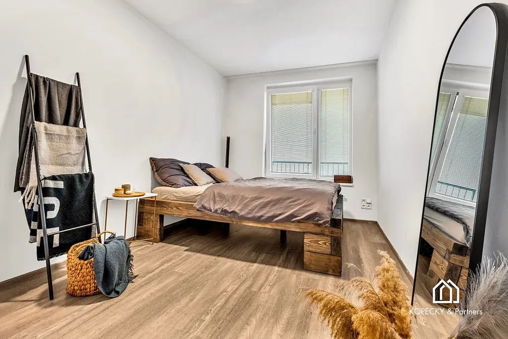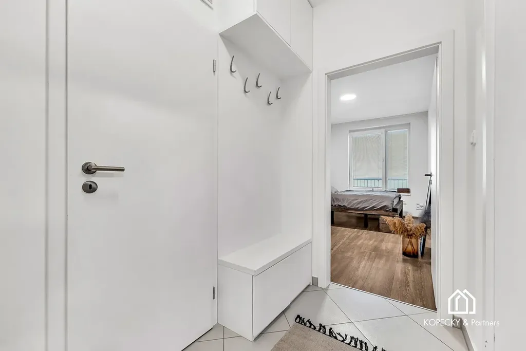 Dispozice bytu je navržená prakticky a s důrazem na každodenní komfort. Obývací část s kuchyňským koutem nabízí dostatek prostoru pro jídelní stůl i relaxační zónu, ložnice je samostatná a poskytuje klidné zázemí. Skutečnou přidanou hodnotou je prostorná terasa, která funguje jako druhý obývák v teplé části roku – ideální na ranní kávu, posezení s přáteli, zeleň i odpočinek po práci. Díky velikosti terasy získáváte pocit bydlení s venkovním prostorem, který se v Praze hledá čím dál hůř.