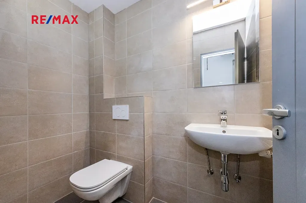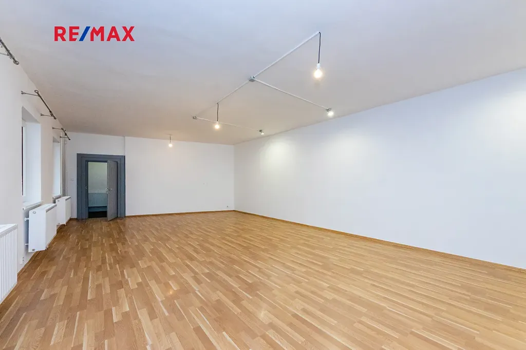 Prostor je dvoupodlažní a nabízí dvě hlavní místnosti, každou o výrazné ploše přes 50 m², což umožňuje pohodlné využití jako otevřený pracovní prostor, ateliér nebo showroom. Dále je zde samostatná koupelna, toaleta, sklepní prostor, kde se nachází plynový kotel pro vytápění, a chodba s výstupem na menší dvorek za budovou.
