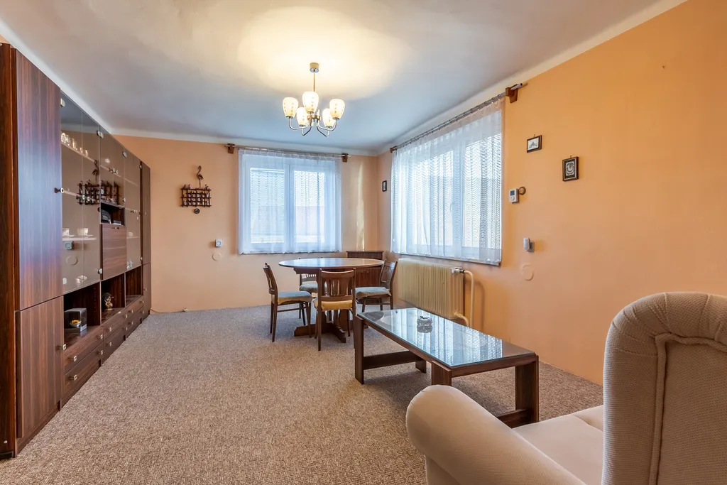Interiér domu je částečně vybavený a je v dobrém stavu, což umožňuje okamžité bydlení, přičemž zároveň nabízí možnost úprav podle vlastních představ. K celkové užitné ploše 162 m² připočítejte prostorný suterén o ploše 82 m², který nabízí další úložné prostory. Celková plocha pozemku činí 1178 m², z čehož 1058 m² tvoří zahrada, která je ideální pro relaxaci, zahradničení či volnočasové aktivity.
