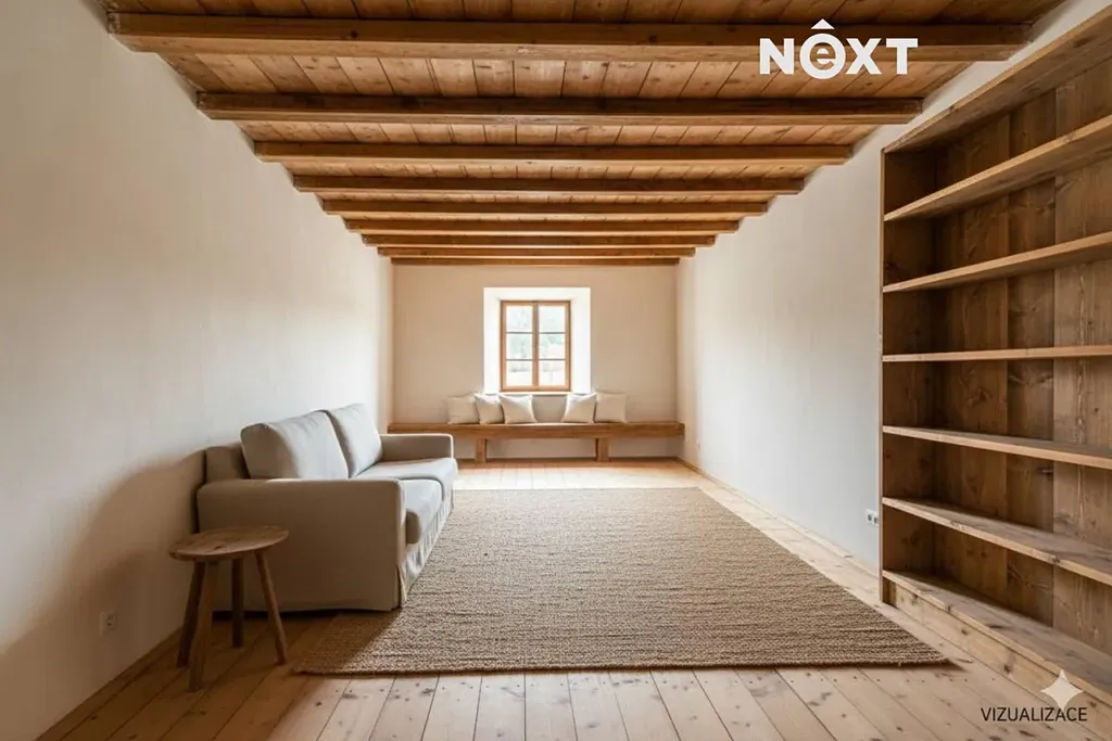 Na domě proběhla většina bouracích a přípravných prací. Dům nabízí výjimečný potenciál – lze dotvořit obytné plochy, pracovat s otevřenými krovy, vybudovat terasu nad stodolou a prostor využít pro rodinné bydlení, rekreaci či kombinaci s ateliérem/dílnou.