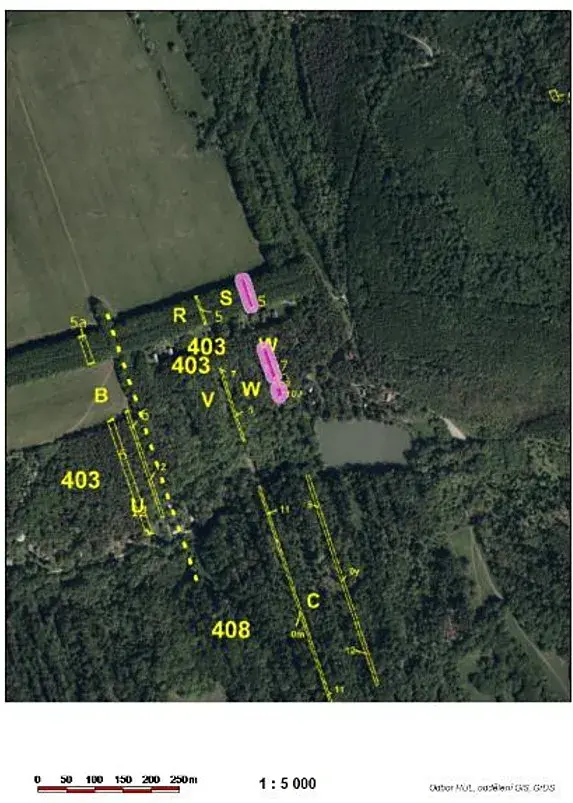 Nabízíme k prodeji lesní pozemky, které se nachází v extravilánu obce, mimo zastavěnou část obce. Pozemky leží v chatové rekreační oblasti v blízkosti malého rybníku s místním názvem Kejda. Pozemky tvoří úzké lesní parcely ve svažitém terénu, které jsou součástí rozsáhlého lesního komplexu majetkově členěného řemenovými parcelami. Aktuálně se na pozemku nachází porostní skupina 403 S k 5 se zastoupením dřevin DB, LP, BO, DBC, porostní skupina 403 W k 7 se zastoupením dřevin SM, BO a porostní skupina 403 W j 107 s bezlesím. Přes pozemek p.č. 5835/48 vede nezpevněná komunikace procházející chatovou oblastí.