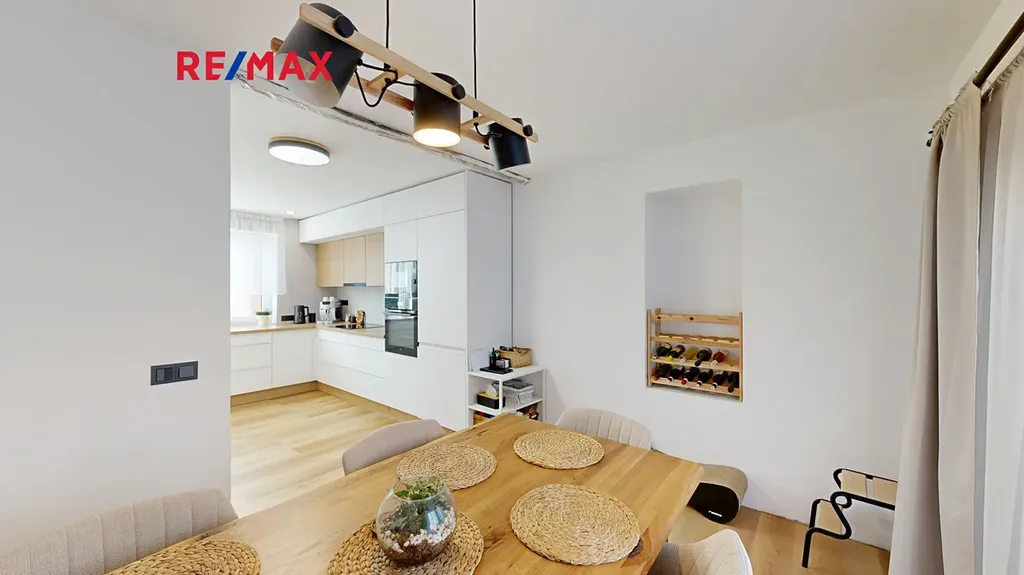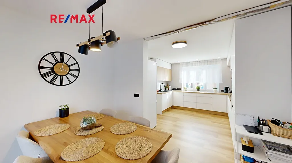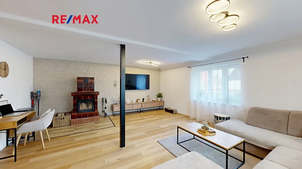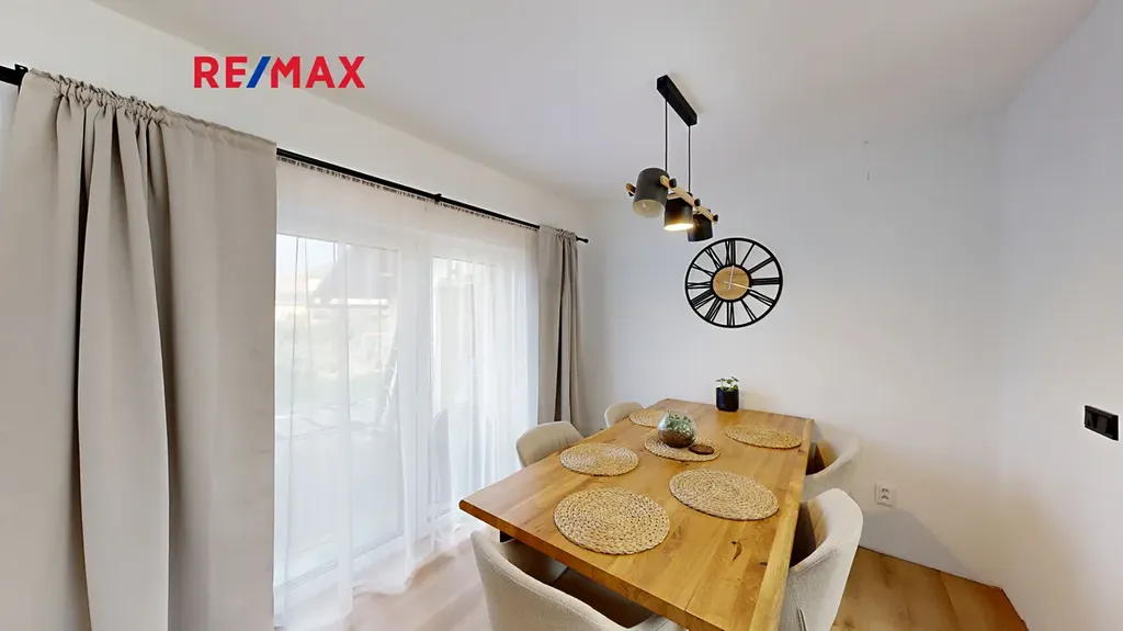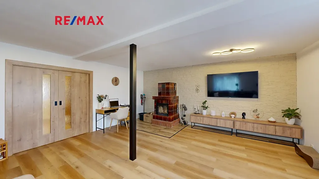 Dům disponuje čtyřmi samostatnými pokoji, oddělenou jídelnou a velkou kuchyní, což poskytuje dostatek prostoru pro vícečlennou rodinu. V přízemí se nachází obytná zóna domu. Je zde moderní kuchyně propojená s jídelnou, odkud vedou francouzská okna na terasu a do zahrady. Pokud rádi přijímáte návštěvy, oceníte opravdu prostorný obývací pokoj, kde si můžete užívat společné chvíle u kachlových krbových kamen, která dodají prostoru jedinečný ráz. Díky podlahovému vytápění bude váš domov vždy příjemný, ať už venku panuje jakékoli počasí.