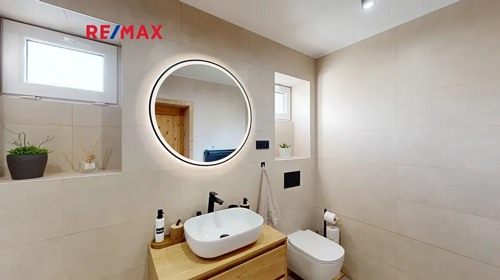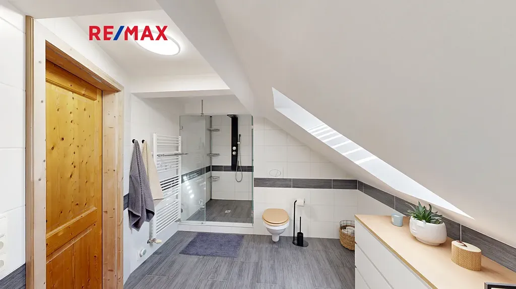 Při celkové rekonstrukci domu dokončené v letošním roce bylo dbáno na praktičnost i moderní technologie. Nový majitel jistě ocení uspořádání domu, smysl pro detail, designové vybavení, ale také moderní technické zázemí. Velkorysou prádelnou s pračkou a sušičkou v přízemí počínaje, přes praktickou garáž, až po moderní technické vybavení, plynový kotel, podlahové topení, solární panely a další. Venkovní část domu potřebuje ještě trochu úprav, přesto věřím, že i zahrada s dostatkem místa pro hry dětí nebo letní grilování s rodinou a přáteli zaujme.