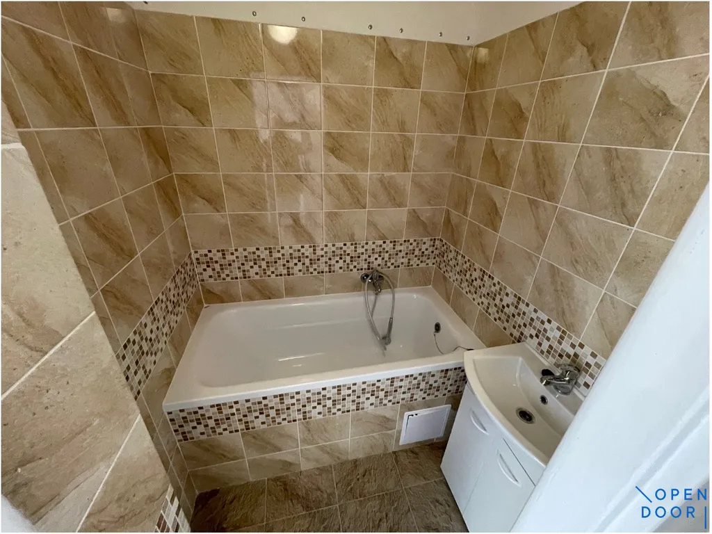 Byt se nabízí jako částečně vybavený kuchyňskou linkou s kombinovaným sporákem, v kuchyni též přípojka na pračku. Dále nalezneme dva velké samostatné pokoje. Koupelna je s vanou, toaleta zvlášť. V bytě jsou již instalovaná plastová okna.