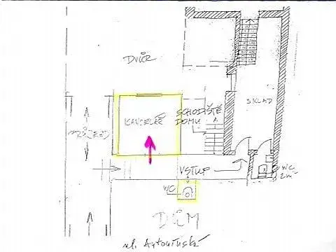 Nabízíme samostatnou kancelář o ploše 13m2 v soukromém nájemním domě ve zvýšeném přízemí s orientací do dvora domu. V přízemní části domu se nachází nebytové prostory a průjezd do dvorní komerční části, v horních podlažích byty. Vstup do kanceláře je z ulice přes průjezd domu u hlavního vchodu do bytové části. WC pro kancelář je přes chodbu. Dům je vytápěn vlastní plynovou kotelnou, spotřeba tepla a elektřiny měřená.