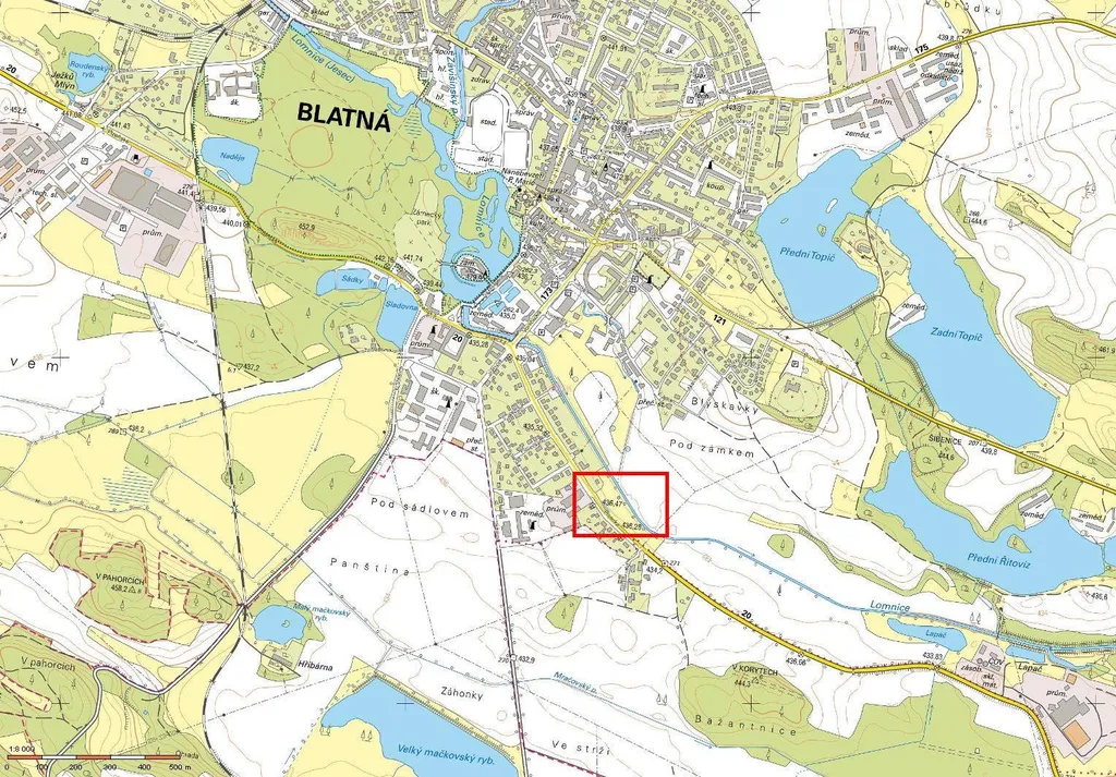 Pozemek leží na okraji města Blatná, v klidném prostředí obklopeném přírodou. Blatná nabízí plnou občanskou vybavenost - obchody, služby, dopravu.