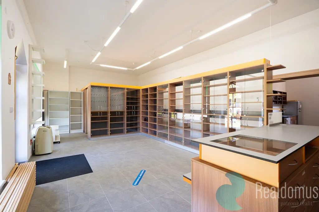 • Prodejní prostor s výlohou a vstupem z promenády – aktuálně vybaven regály
