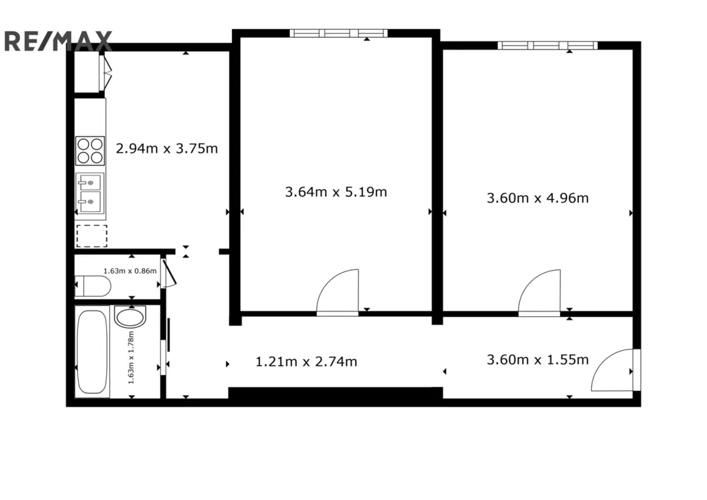 Byt má praktické uspořádání – z centrální chodby se vstupuje do samostatné kuchyně a dvou neprůchozích pokojů. Tento koncept poskytuje pohodlí a dostatek soukromí jak párům, tak i vícečlenné domácnosti nebo dvěma spolubydlícím.