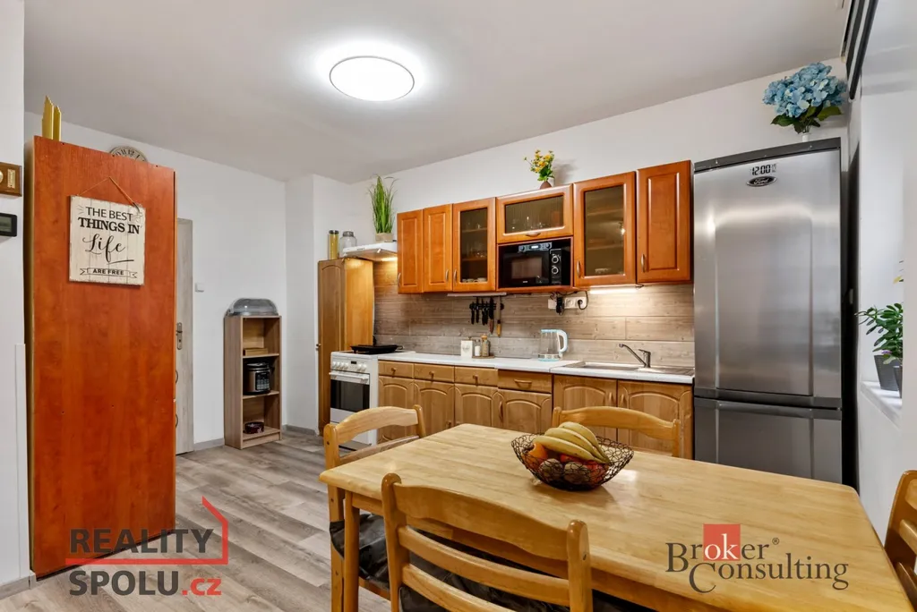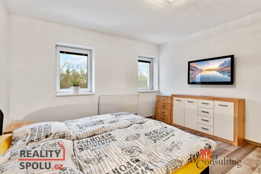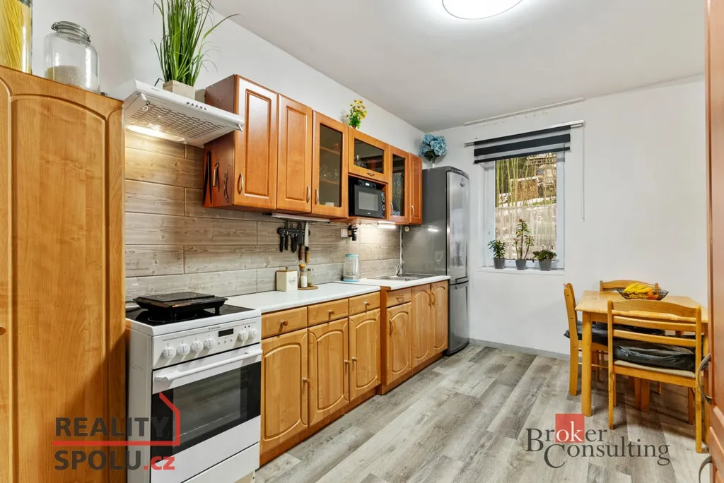 Samotný dům má dvě nadzemní podlaží, půdní prostor a dva sklepy. V přízemí najdeme dvě samostatné bytové jednotky 2+kk, oddělené společnou chodbou, kde je také umístěn kotel na tuhá paliva pro vytápění celého objektu. V patře se nachází další byt 2+kk a několik místností se vstupem na půdu – ideální prostor pro vestavbu dalšího bytu.