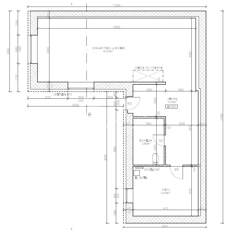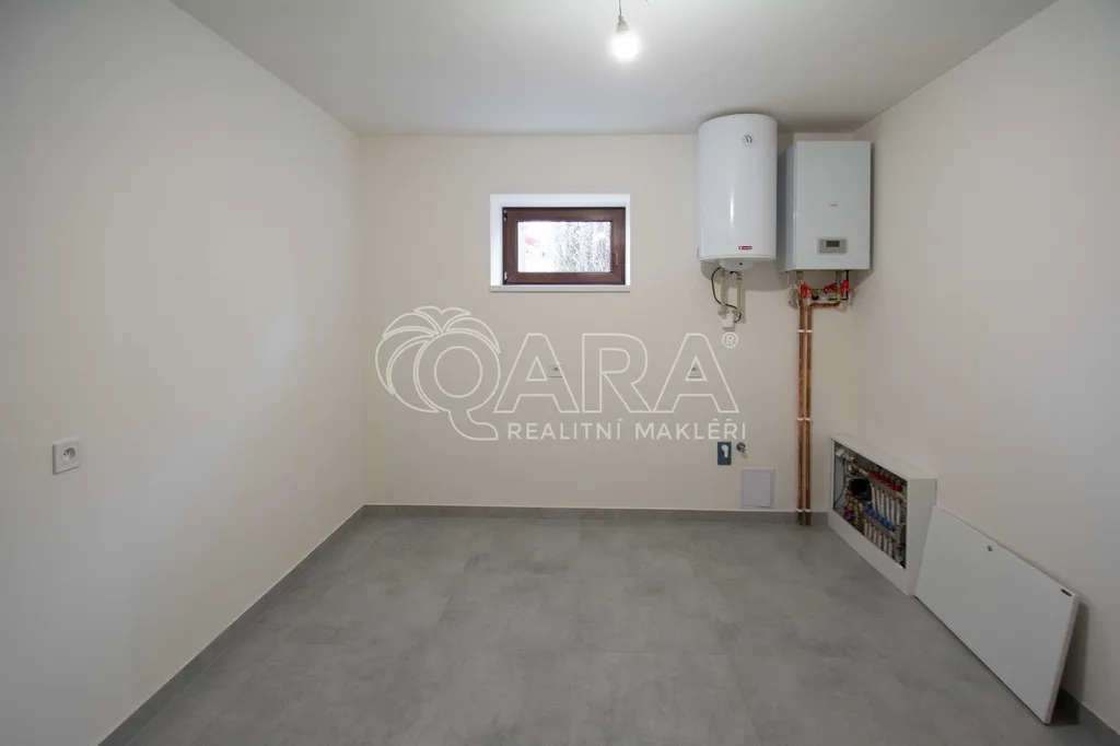 • V celém přízemí podlahové topení s napojením na nový elektrokotel + otopný žebřík v koupelně.