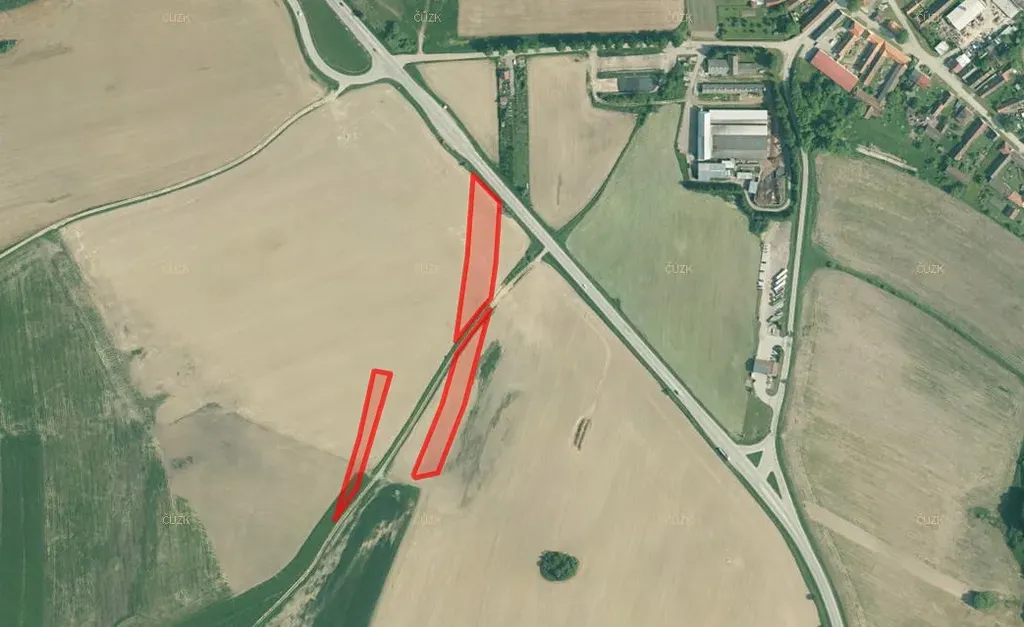 orná půda: parc. č. 569/30, 569/48, 583/66, 583/82, 590/22, 590/25, 594/3, 687/55 – celkem 27 825 m²