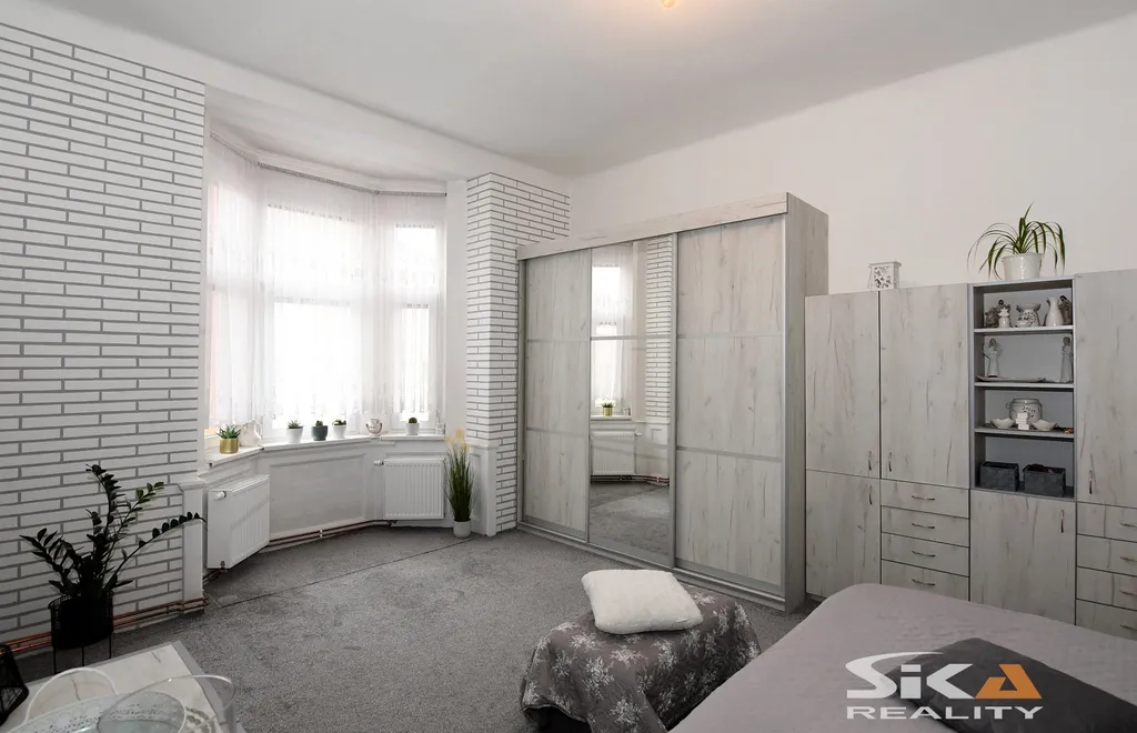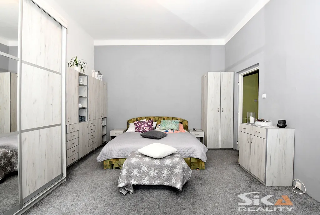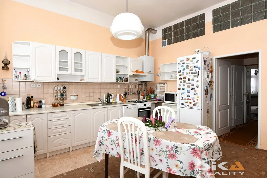 Nabízíme k prodeji prostorný cihlový byt o dispozici 2+1 s příslušenstvím a garáží o výměře 29 m², která se nachází v těsné blízkosti domu. Bytová jednotka o celkové ploše 76 m² je situována ve druhém nadzemním podlaží cihlového domu po částečné revitalizaci (nová střešní krytina, zateplený plášť a nová fasáda). V domě se nacházejí celkem čtyři bytové jednotky, které společně využívají zpevněný dvorek a upravenou zahrádku o velikosti 109 m². Dispoziční řešení bytu zahrnuje vstupní chodbu, prostornou kuchyni orientovanou na severní stranu, obývací pokoj a ložnici situované na jih a koupelnu s vanou spojenou s toaletou. Byt prošel částečnou modernizací – má plastová okna a v roce 2001 byla instalována nová kuchyňská linka, interiérové dveře a zhotoveny nové obklady v koupelně. V obytných místnostech byly zachovány původní parkety. Vytápění je zajištěno centrálně prostřednictvím vlastního plynového kotle. K bytu dále náleží zděná kolna umístěná na pozemku za domem. Měsíční náklady na bydlení činí pro dvě osoby 3 250 Kč (z toho fond oprav 1 956 Kč) + zálohy na plyn 2 285 Kč a elektrickou energii 1 090 Kč. Byt je k dispozici k okamžitému užívání. Uvedená cena nezahrnuje cenu garáže s montážní jámou, jejíž převod není podmínkou prodeje. Vzhledem k tomu, že nebyl předložen Průkaz energetické náročnosti budovy, uvádíme energetickou třídu G. Další informace Vám rádi poskytneme při osobní prohlídce nebo v naší realitní kanceláři.