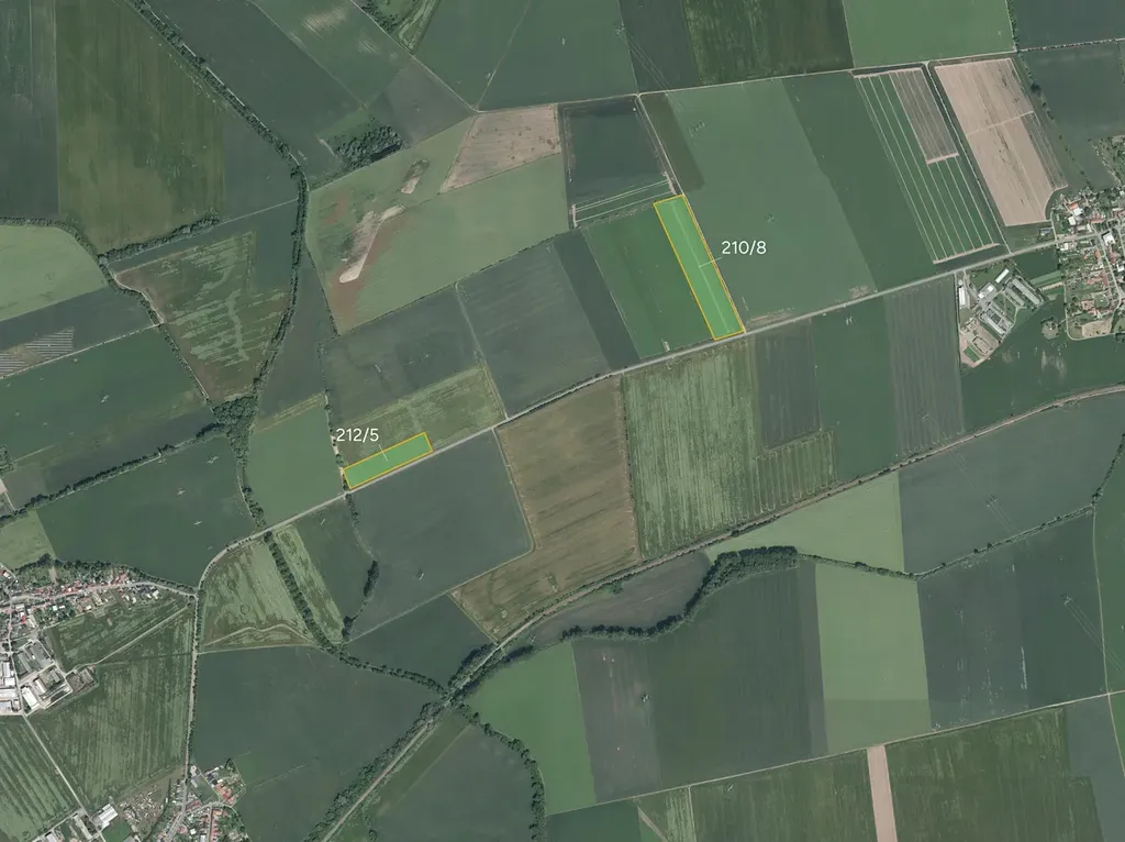 Pozemky leží v rovinatém zemědělském bloku přímo u cesty, což umožňuje pohodlný příjezd a efektivní obhospodařování moderní mechanizací. Oba pozemky mají pravidelný tvar, který usnadňuje plánování osevních postupů i denní provoz. V katastrálním území dosud nebyly zahájeny komplexní pozemkové úpravy (KPU).
